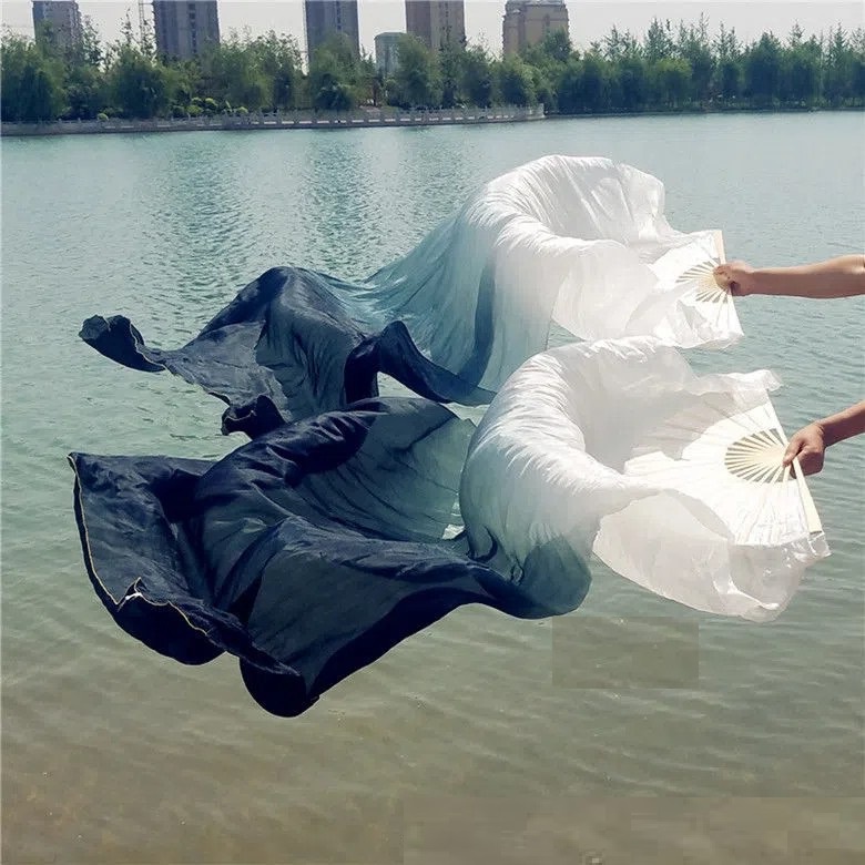 1 Pair 1.8M Belly Dance Performance Party Hand Made Silk Bamboo Long Fans Gradient Color Dance Props Silk Fans Dancing Fan Leque Fan Veil Fan