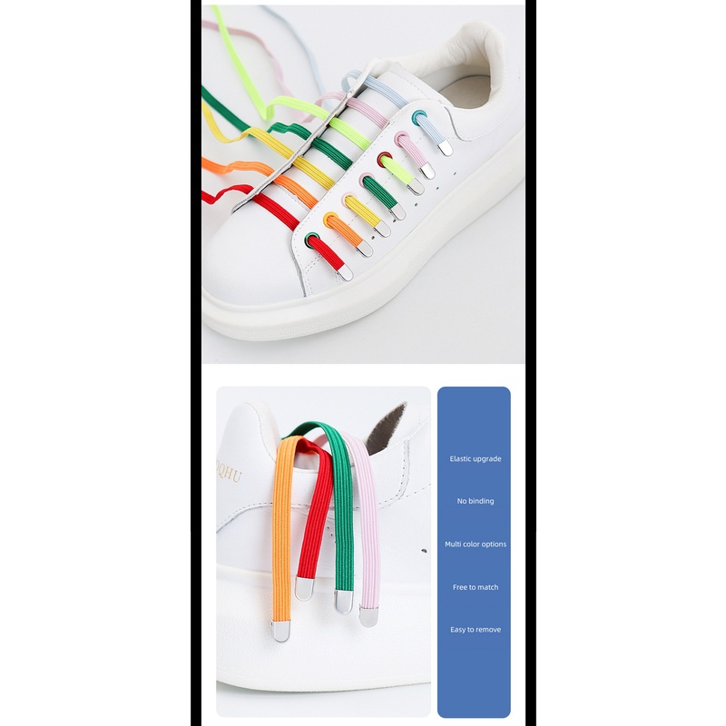 1 Pair Elastic Shoelaces Flat Press The Metal Lock No Tie Shoe Laces Multi Color Options Sports Competition Sneakers Lazy Lace
