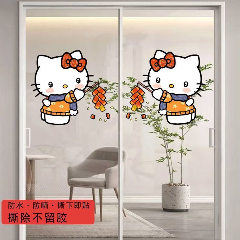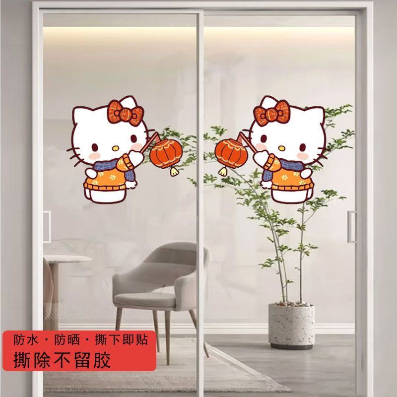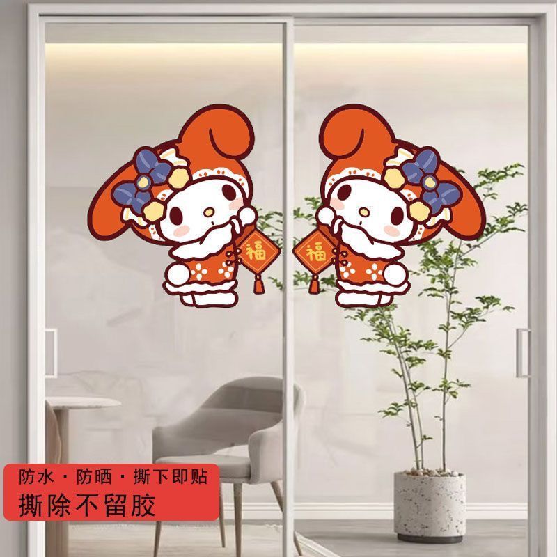 1 Pair Hello Kitty Chinese New Year Window Sticker doors sticker My Melody Sanrio CNY decoration stickers, cute cartoon refrigerator, kitchen and living room stickers - ErLingCT