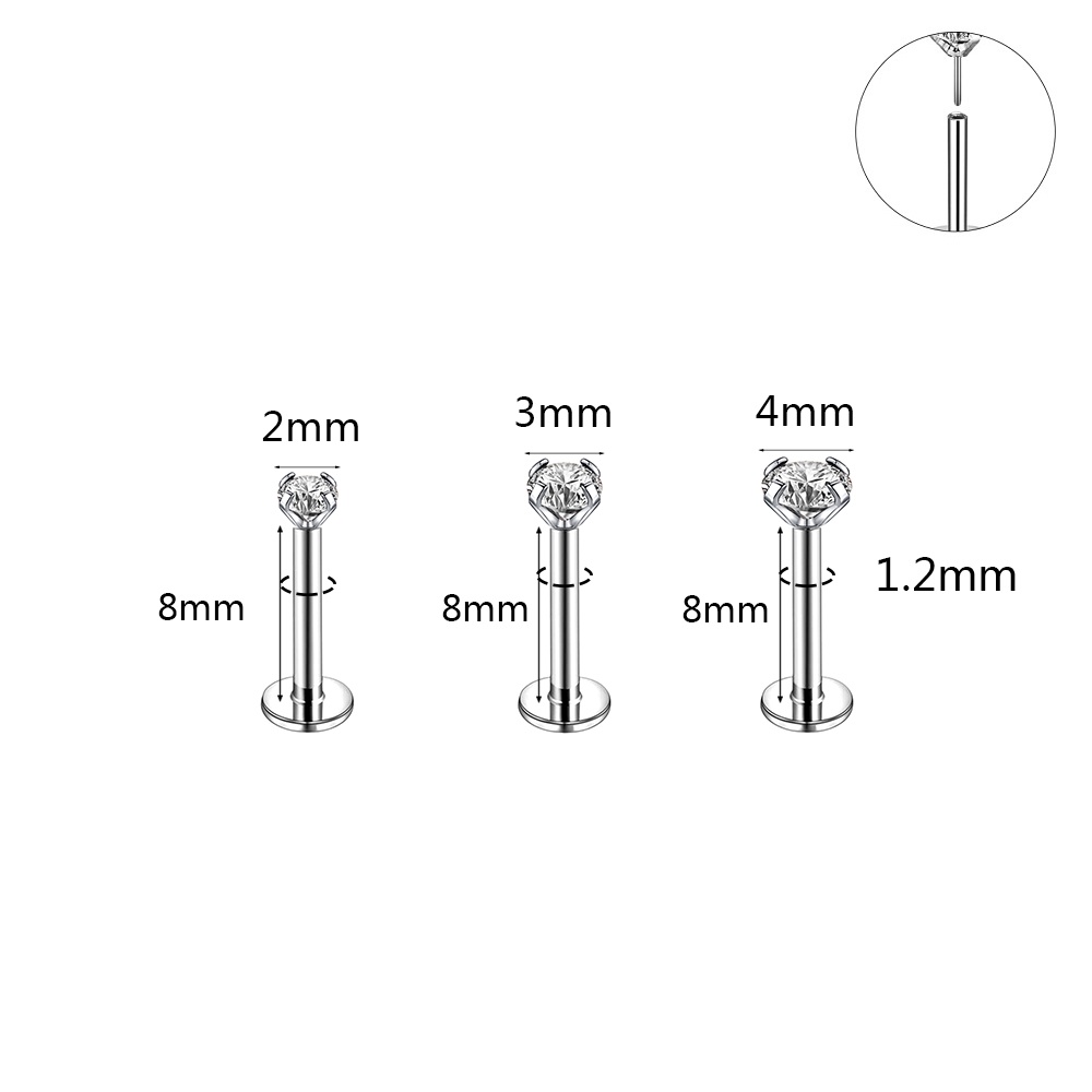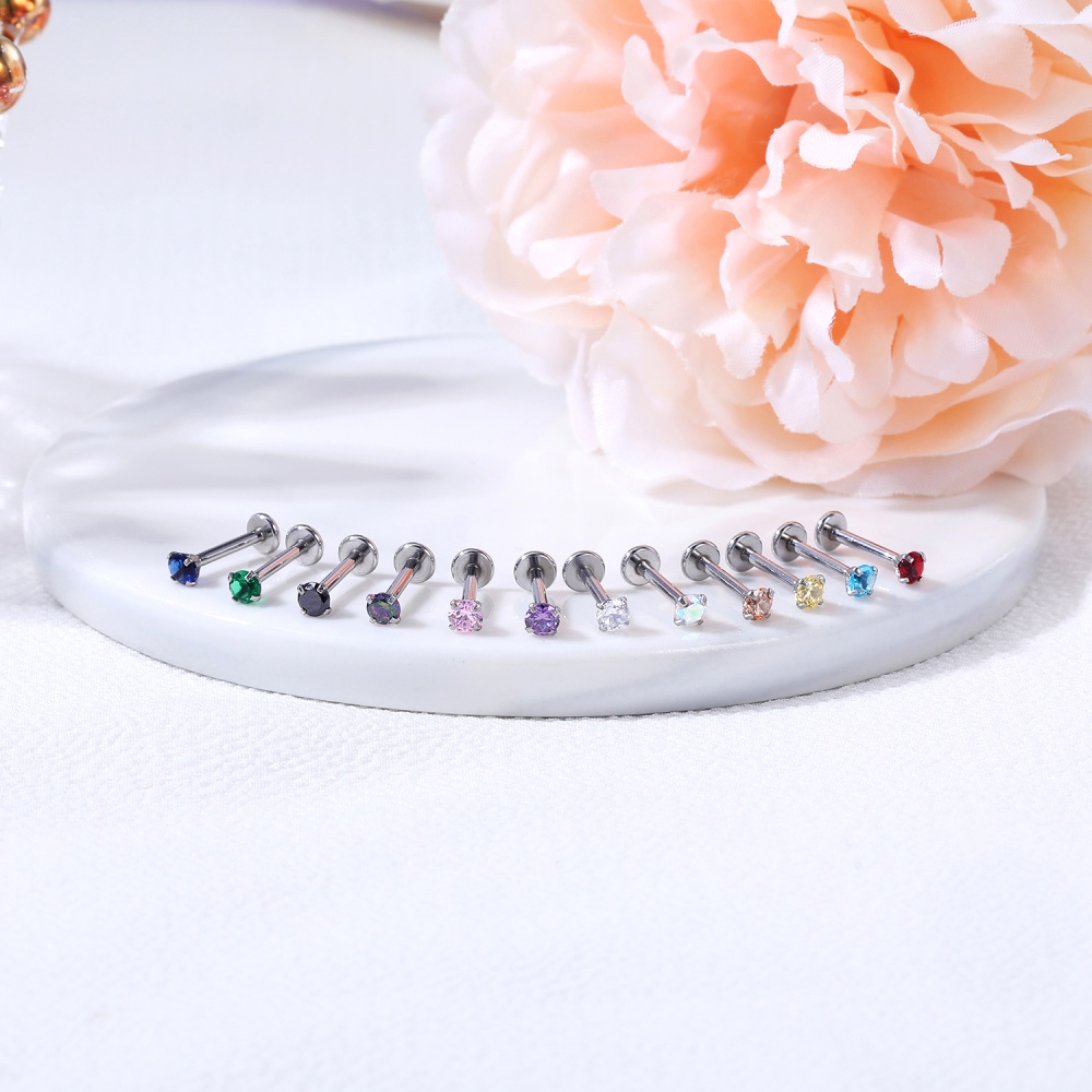 1 Pc 2/3/4mm Color Crystal Labret Lip Piercing Push In Style Stainless Steel Stud Earrings Monroe Cartilage Helix Piercings