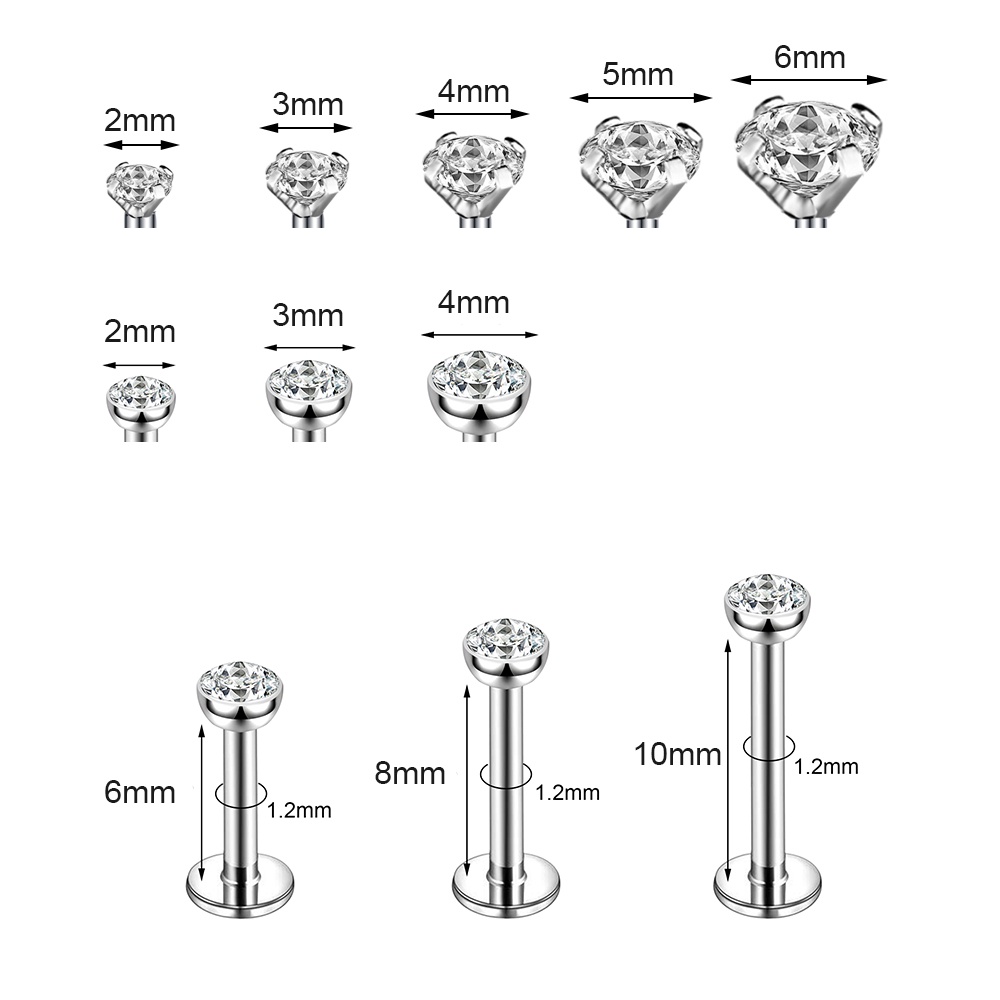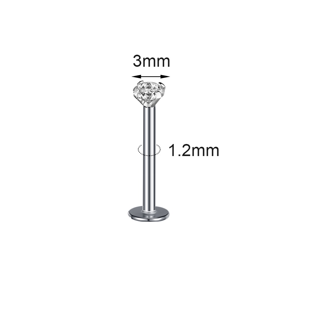 1 Pc Stainless Steel Lip Stud Shiny Crystal Labret Piercing Round Zircon Stud Earrings Cartilage Helix Tragus Piercings
