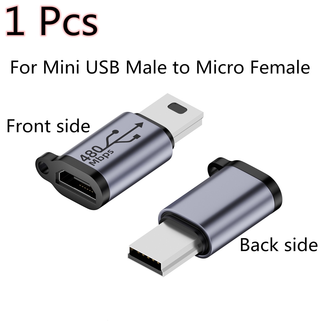 1 Pcs 480Mbps Aluminum Alloy Mini Adapter Micro USB/Mini USB/8-Pin to Micro/Type C Male to Female Connector Converter