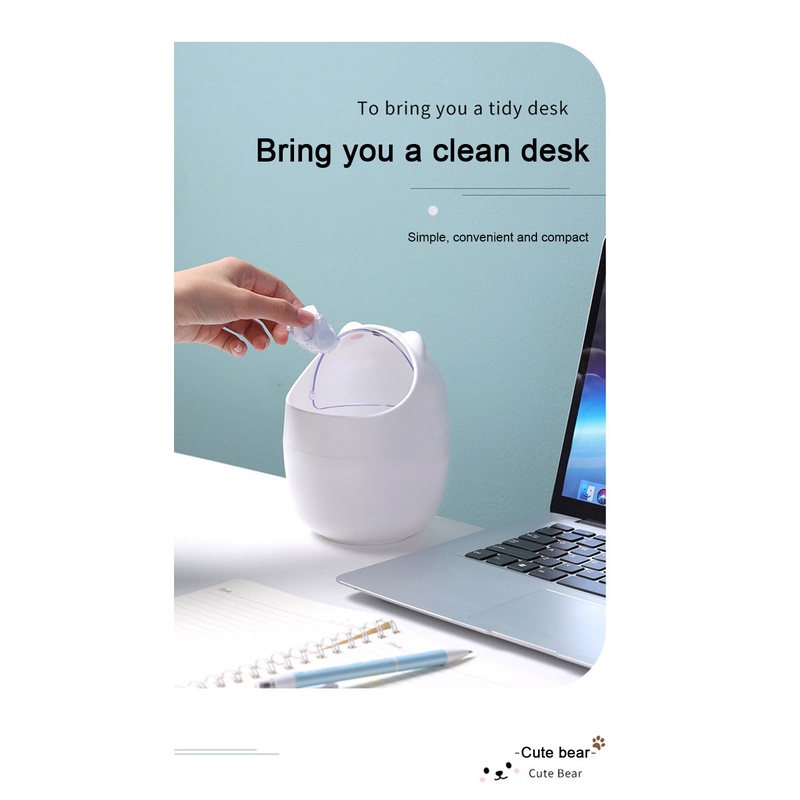 1 Piece Mini Trash Can With Lid Mini Kawaii Cute Bear Trash Bin Storage Box Ins Desktop Trash Can HOT