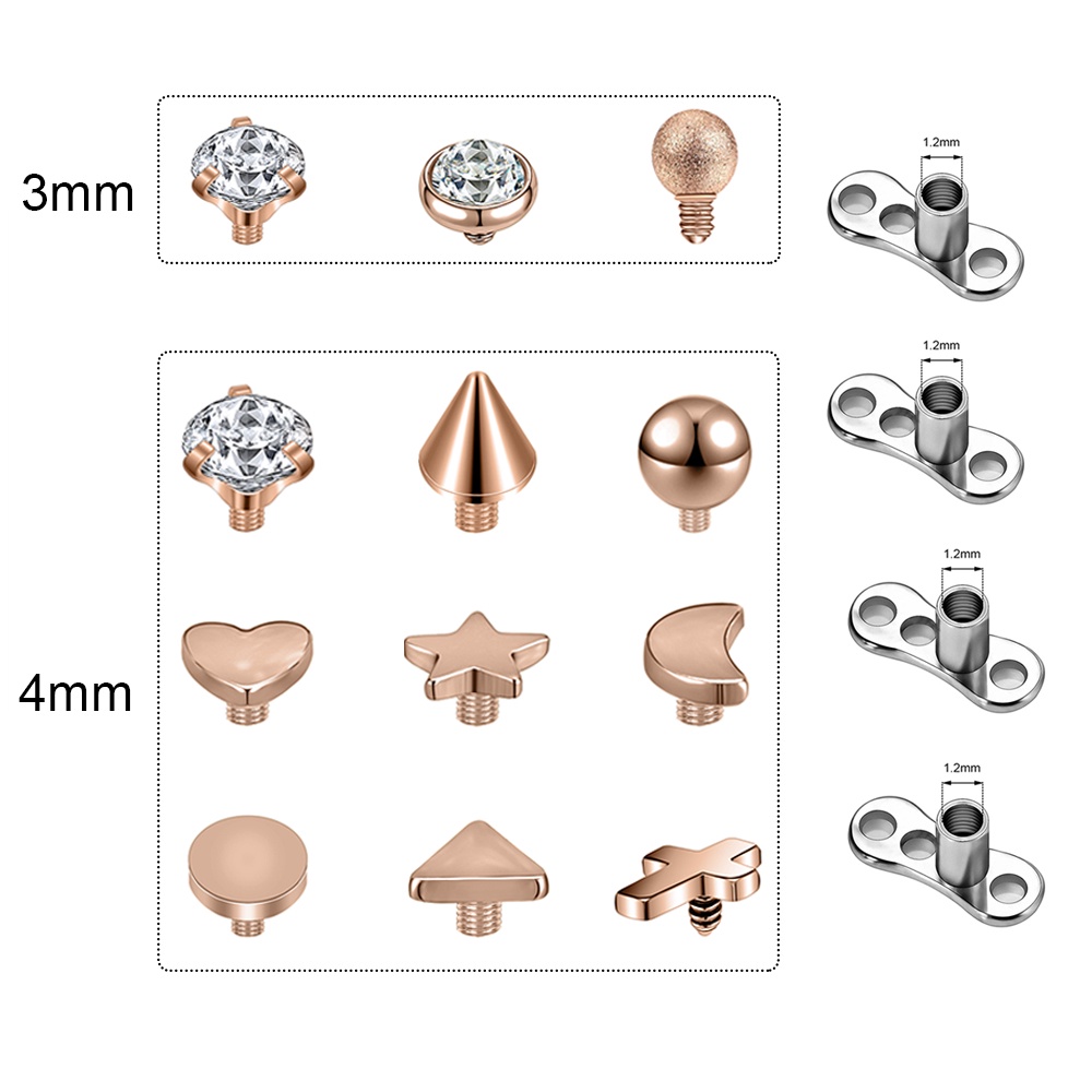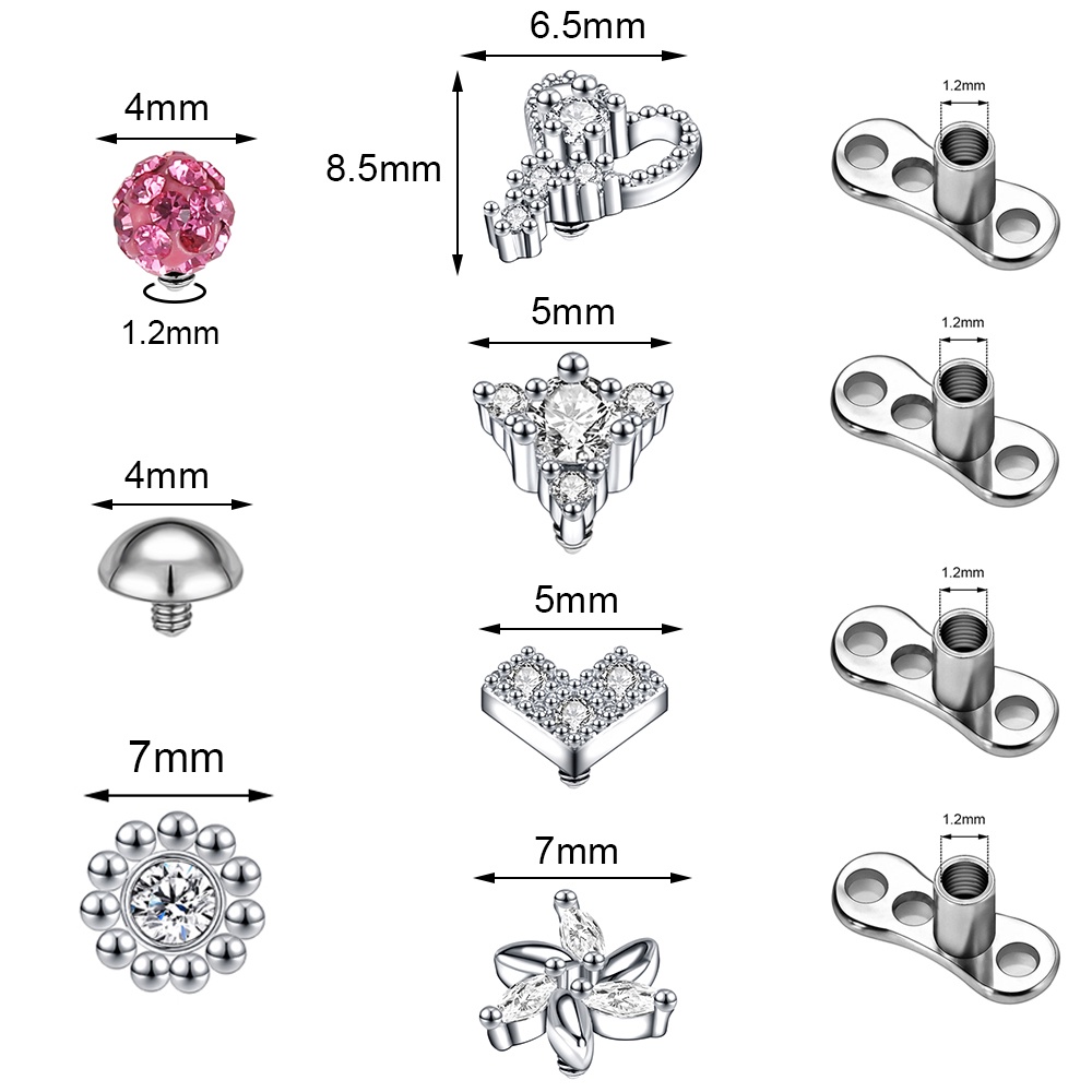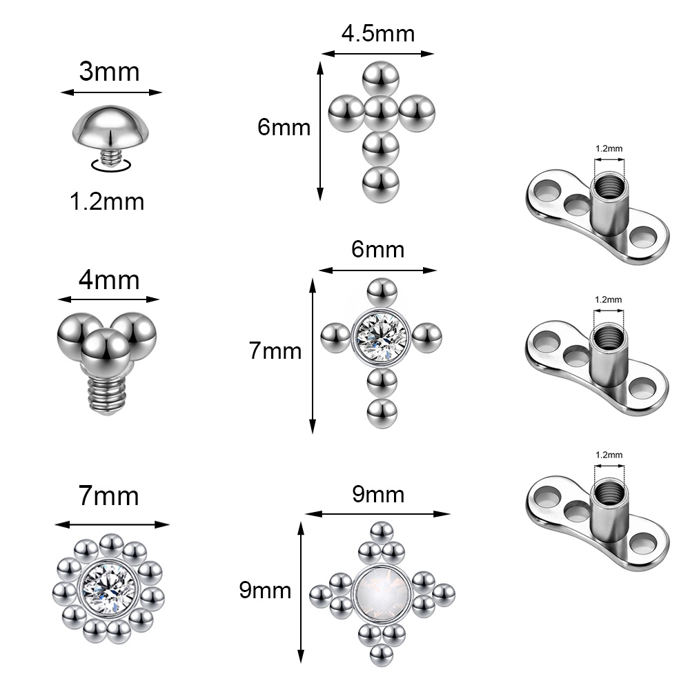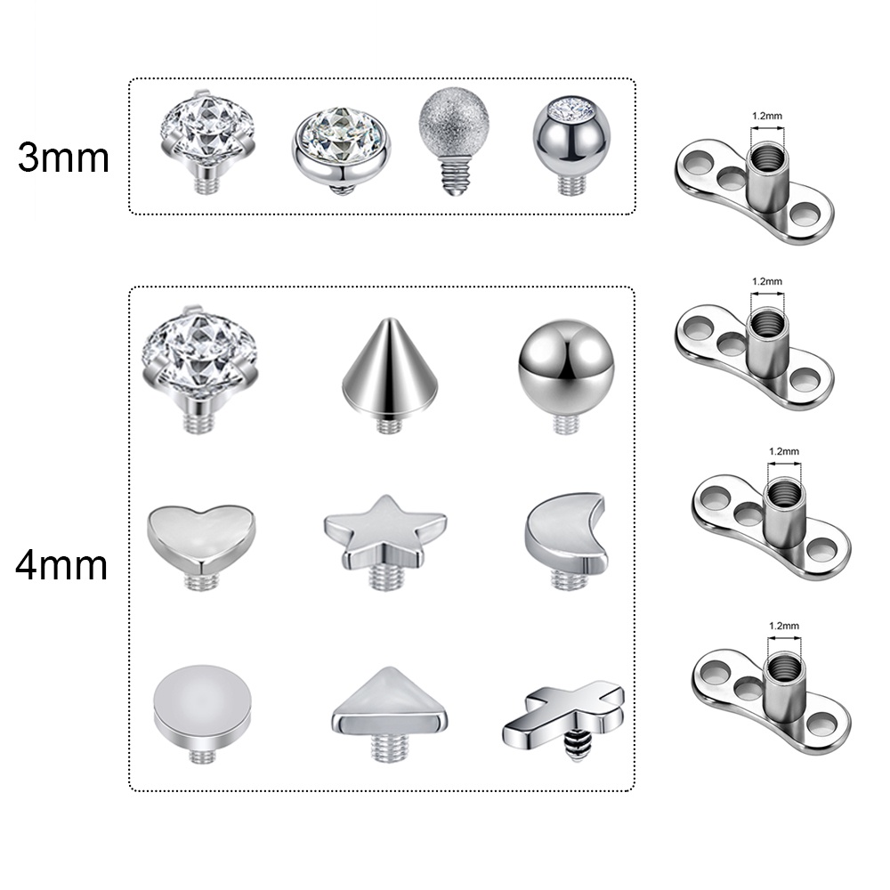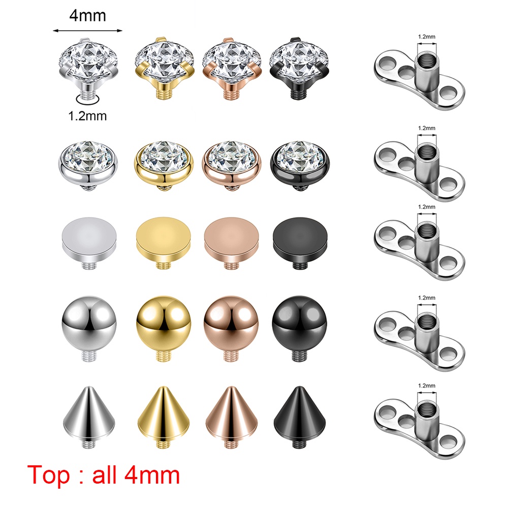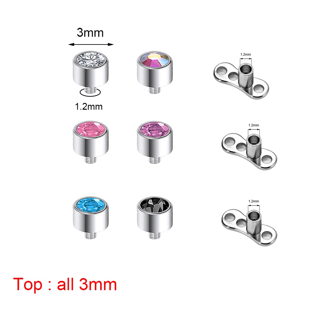 1 Set 2.5/3/4mm Surgical Steel Crystal Micro Dermal Piercing Opal Dermal Anchor Surface Piercings Skin Diver Medusa Piercing