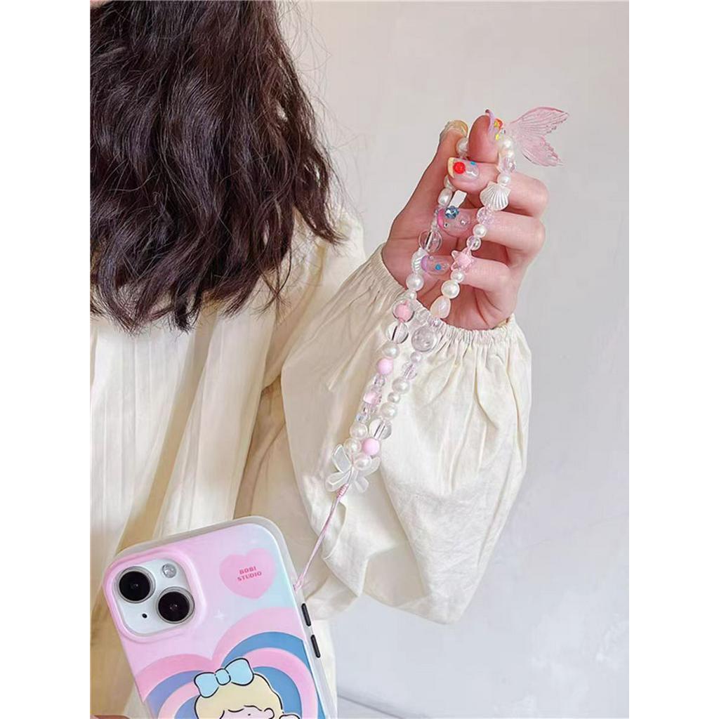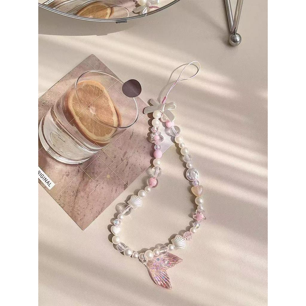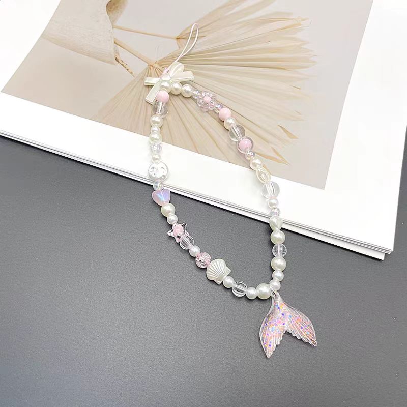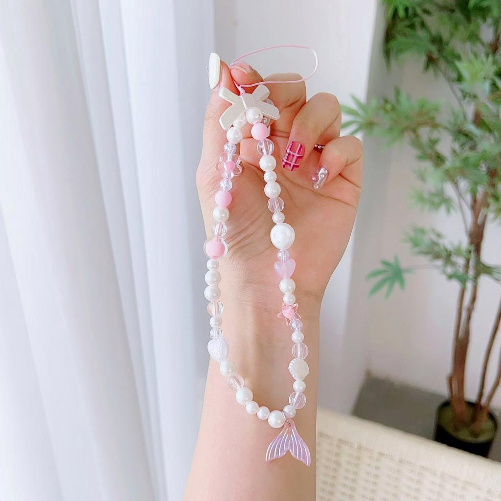 1 piece mobile phone pendant pink acrylic beaded INS