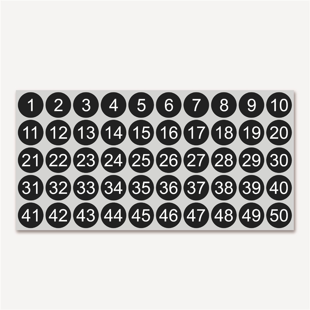 1 to 50 Number Stickers Consecutive Number Stickers 1 Inch Self-Adhesive Decal for Indoor and Outdoor Waterproof Labels