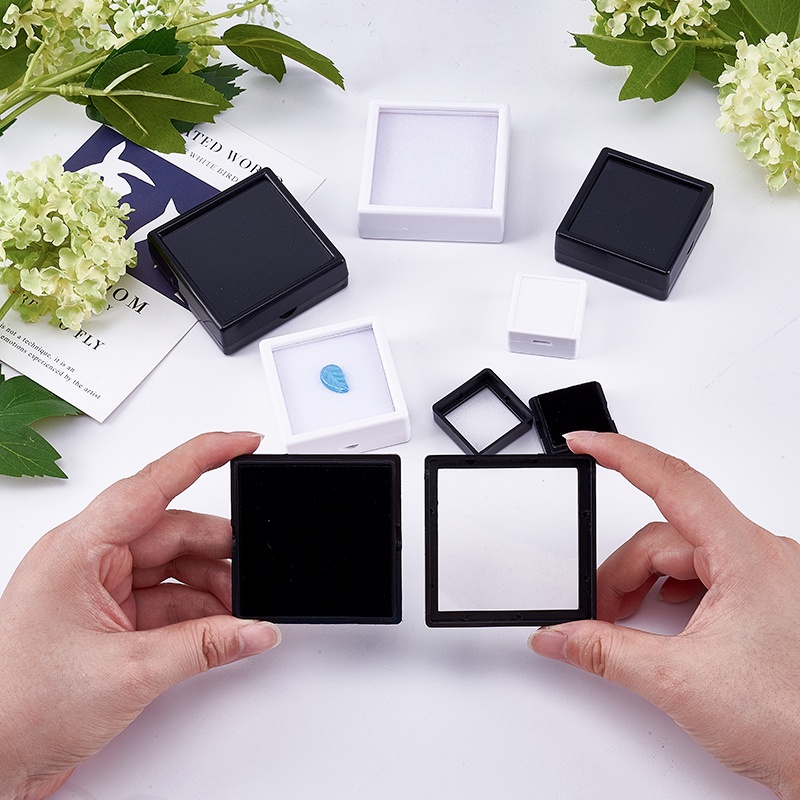 10-36Pcs White/Black Gemstone Display Box/Kraft Jewelry Box Container with Clear Top Lids for Gems Jewelry Packing