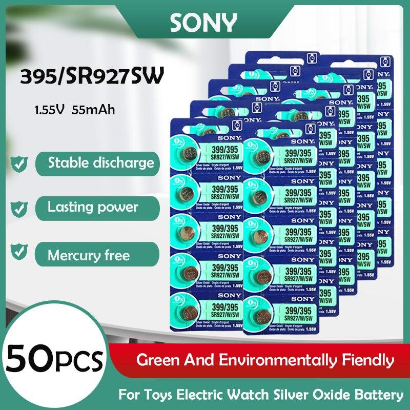 10-50pcs Sony 395 SR927SW SR927W LR927 AG7 399 1.55V silver oxide battery for watch toys car key remote button button cell