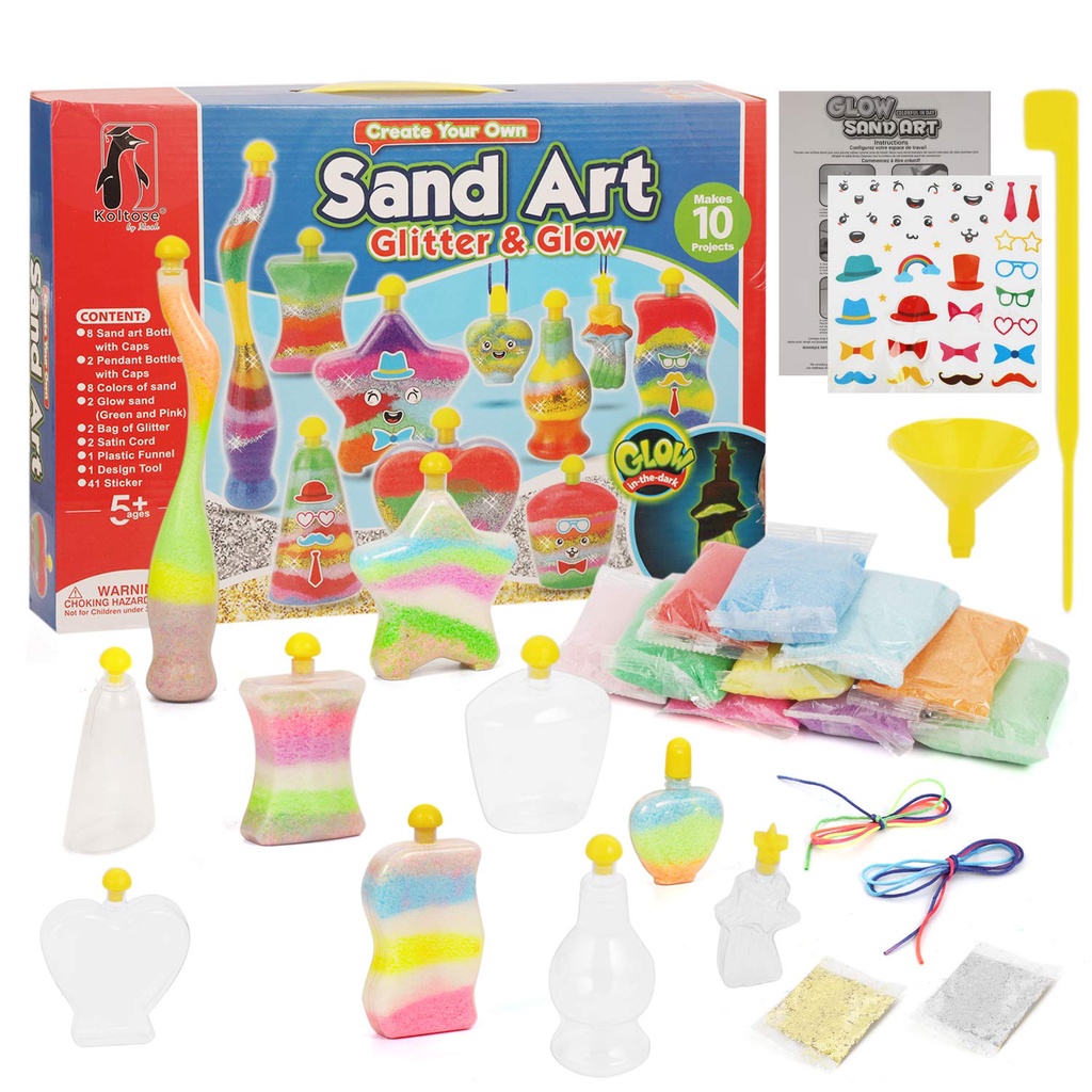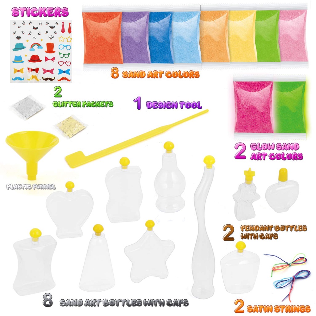 10 Bottles DIY Sand Art Kit Kids STEM Craft Toy Set Bottles Pendants including Glow-in-the-Dark Glitter Packets Stickers