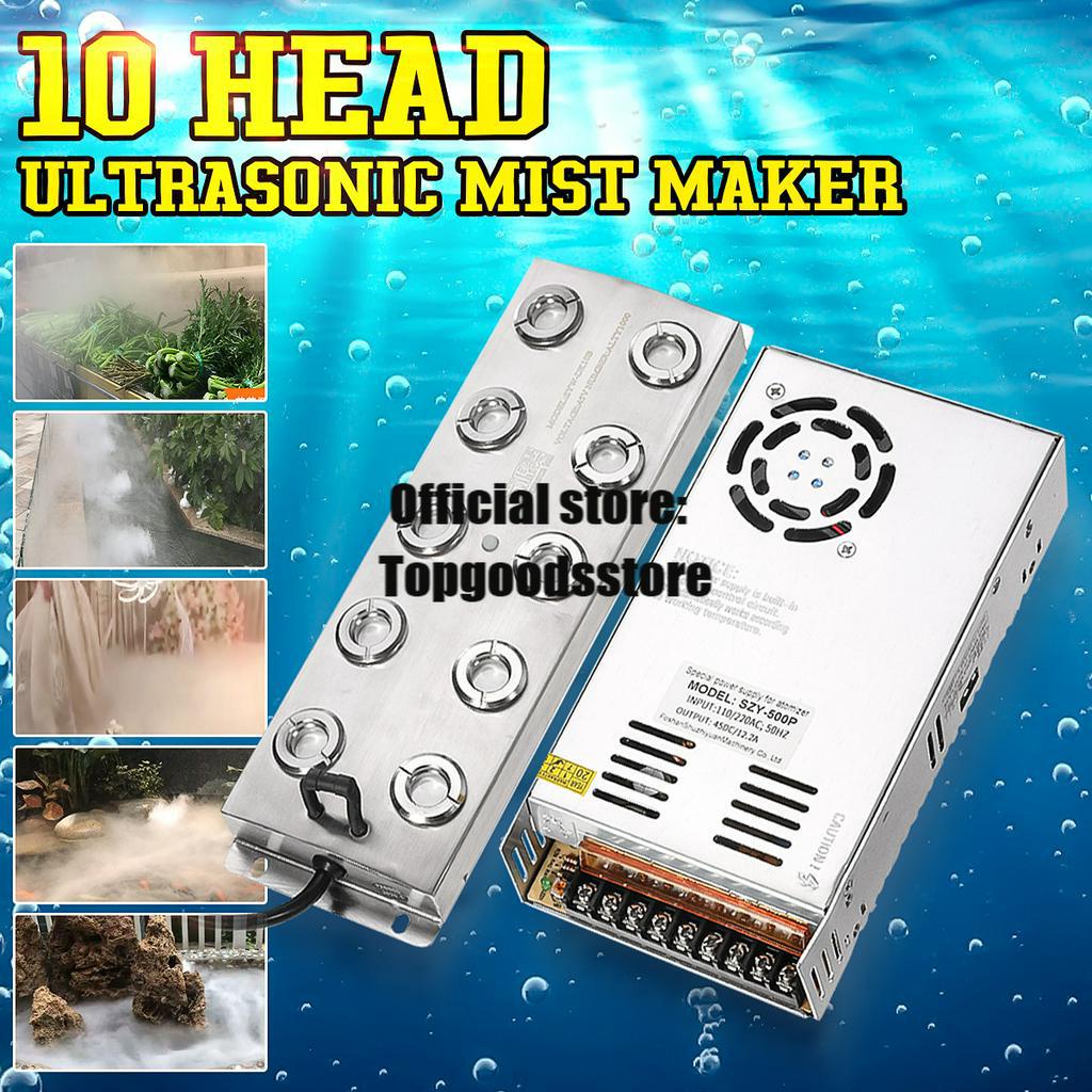 10 Head 5000mL/H Ultrasonic Mist Maker Fogger Humidifier Greenhouse Aeromist Hydroponics with Switching Power Supply