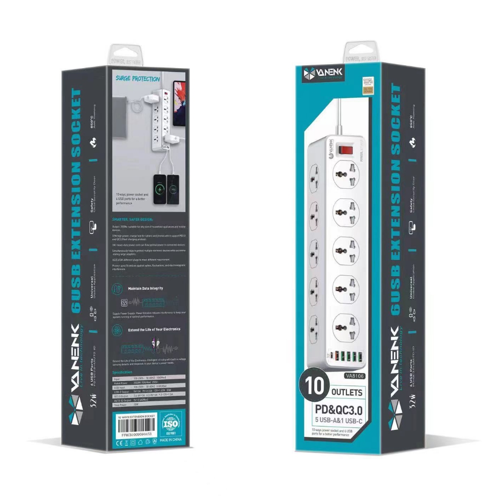 10 Outlets Universal Power Extension Socket With USB C Port 30W MAX Fast Charger PD & QC 3.0 Surge Protection Power Strip Extension Cord 3 meter Singapore UK Plug
