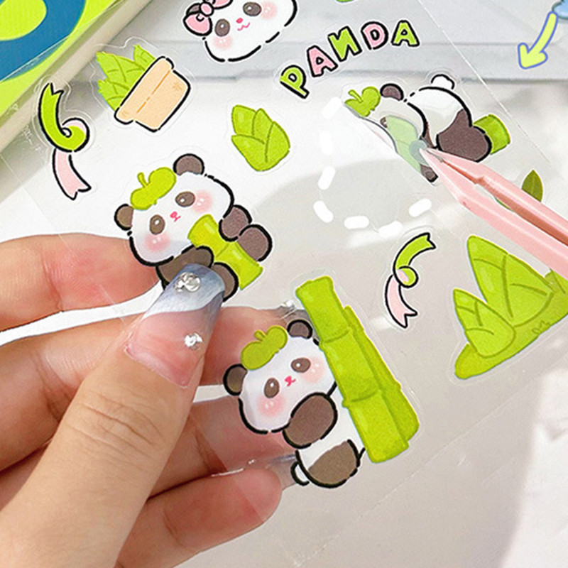 10 Sheets Cute Cartoon Panda Stickers Water Cup Decoration DIY Waterproof Transparent PET Panda Decals