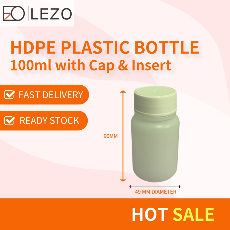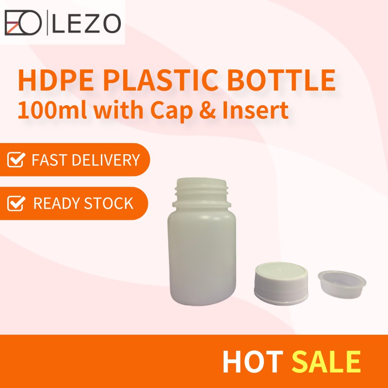 10 pcs of HDPE Round Plastic Bottle/ Botol Plastik HDPE/ TABLET BOTTLE 100ml (Bottle + Cap + Insert)