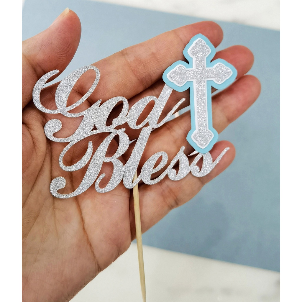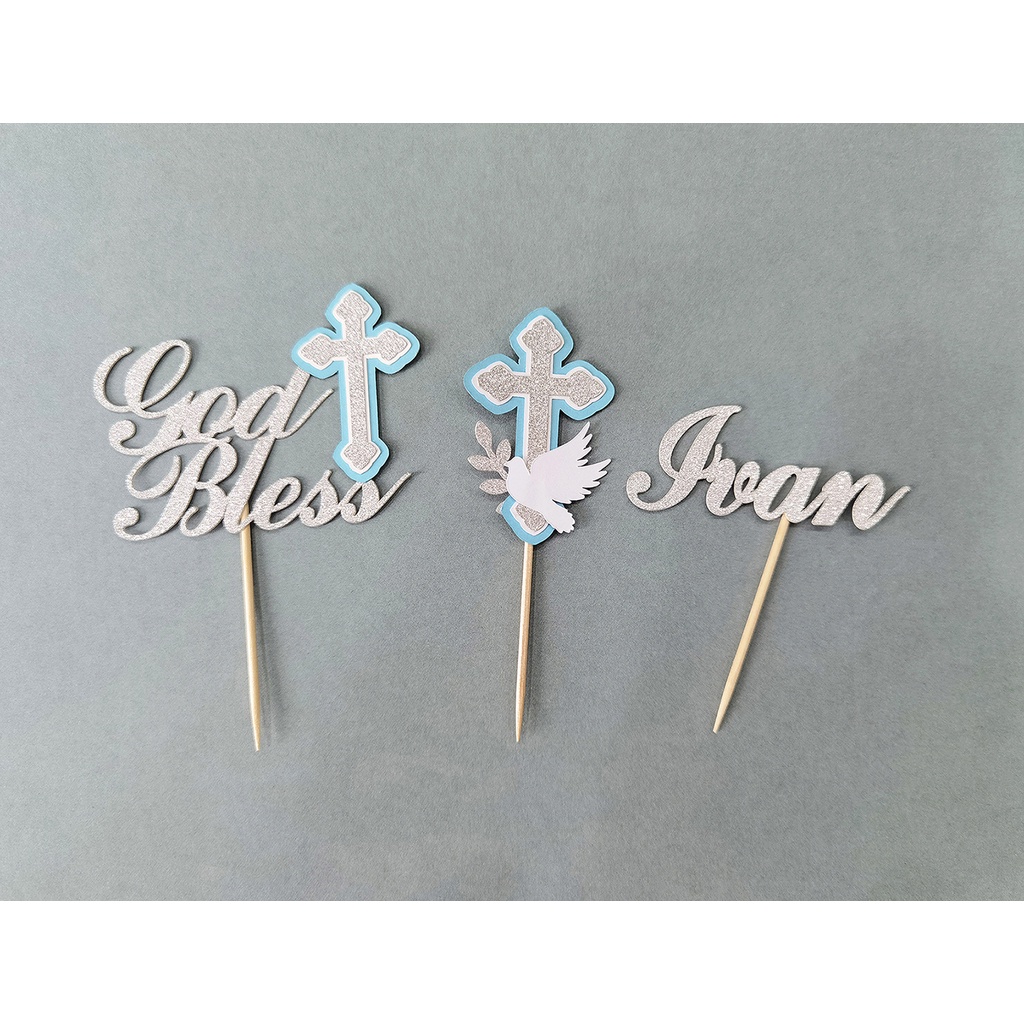 10 pcs. Personalized First Holy Communion Baptism Party Decor. Silver Cross Baptism Cupcake Toppers Dessert Toppers Set