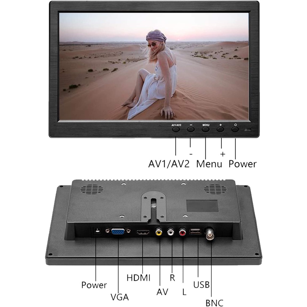 10.1 Inch Monitor 1024x600 Display HD TFT LED Screen Support HDMI AV VGA BNC USB Video Input For Laptop CCTV DVD PC DVR With Speaker