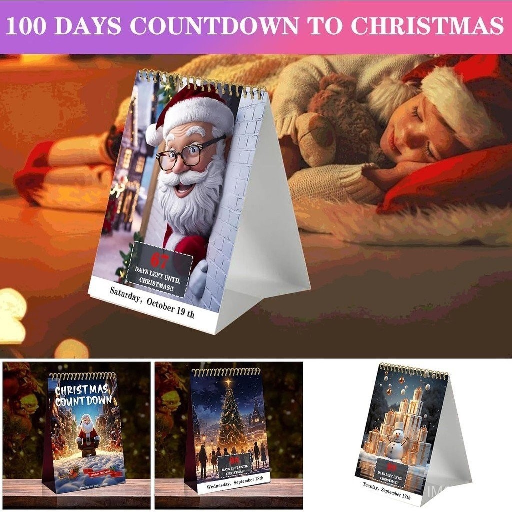 100 Day Christmas Countdown Calendar - 2024 Countdown Calendar Advent Calendar, Christmas Desktop Advent Calendar, Christmas Count Down Products for Home Offices Decor (4 Pack)