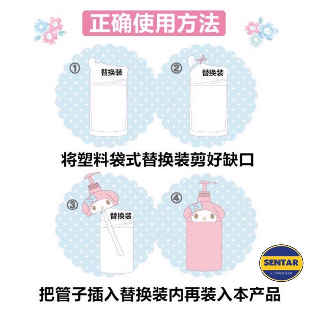 100% Hello Kitty Melody Shampoo Bottle 1000ml Liquid Soap Dispenser