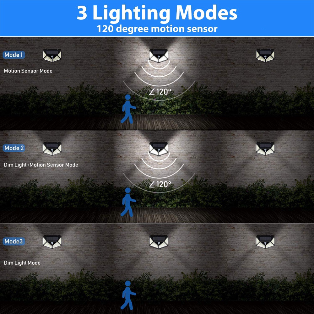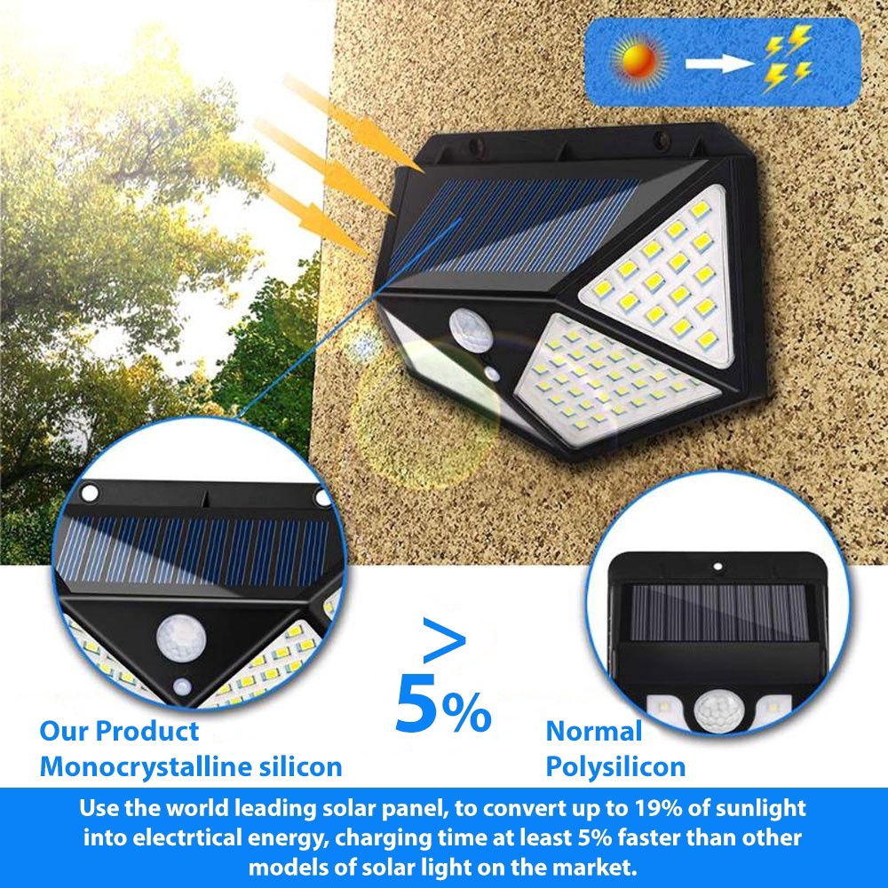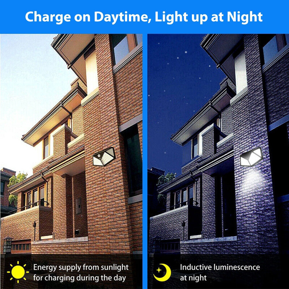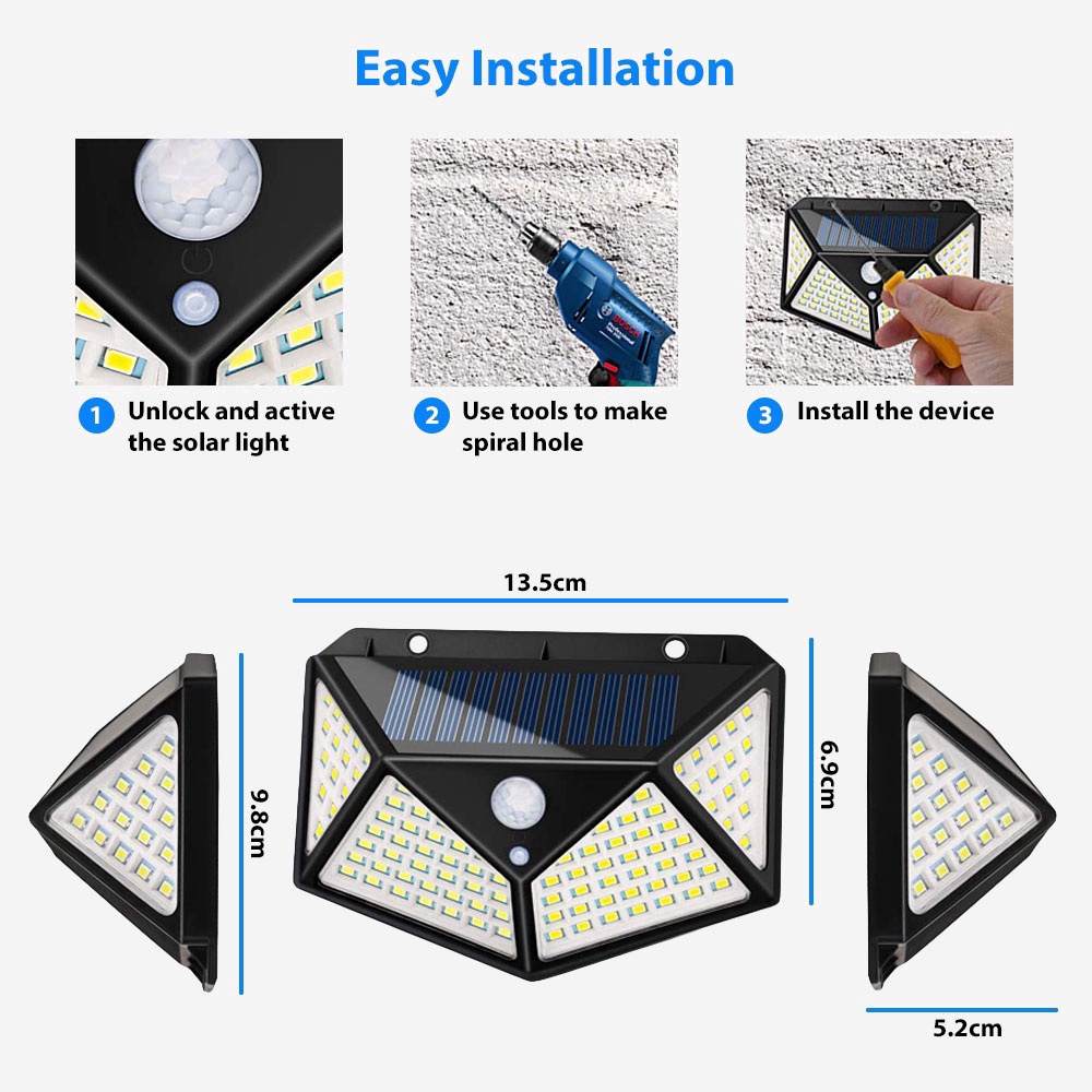 100 LED PIR Motion Sensor Solar Powered Waterproof Outdoor Wall 270 4 Sided IP65 Lights For Car Porch Garden Security