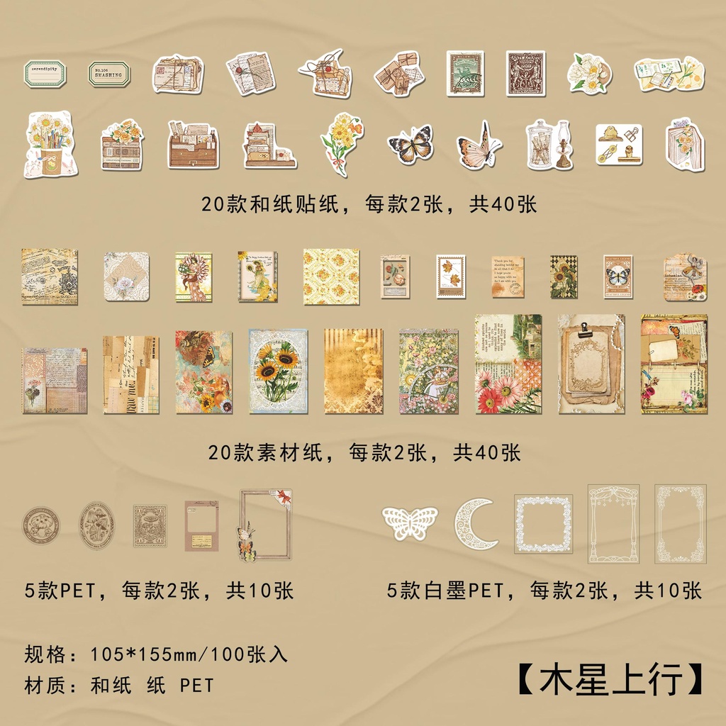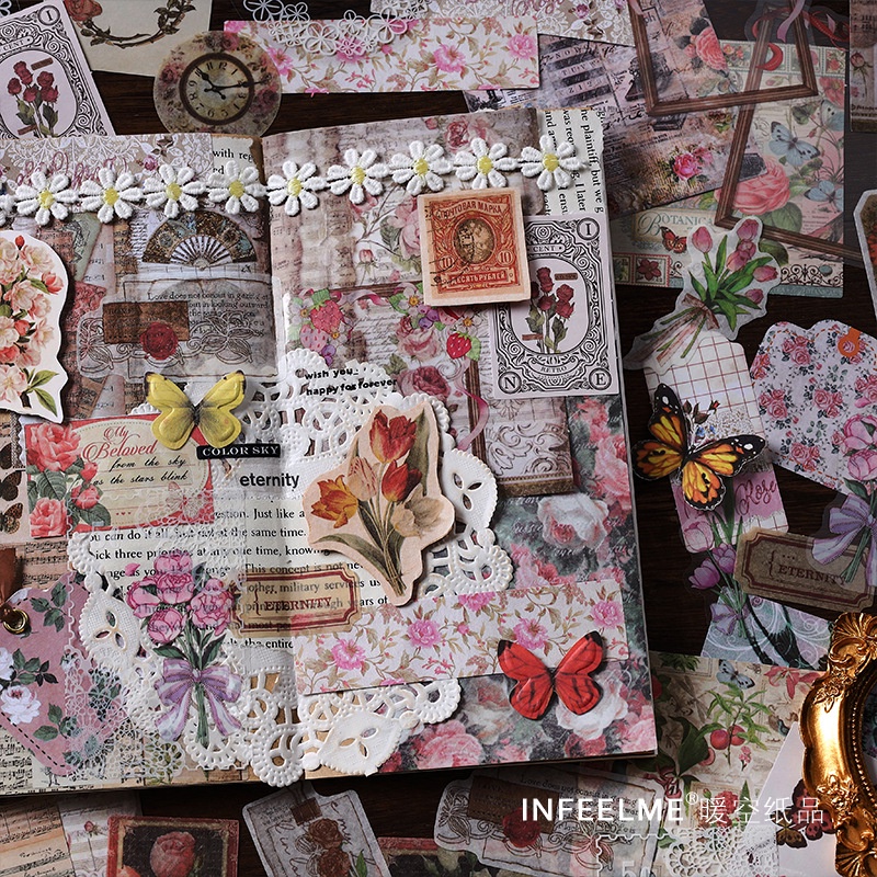 100 Pcs Flora Space Vintage Sticker Pack Decoupage Paper Junk Journal Kit Scrapbook Planner Sticker Supplies For Art Journaling