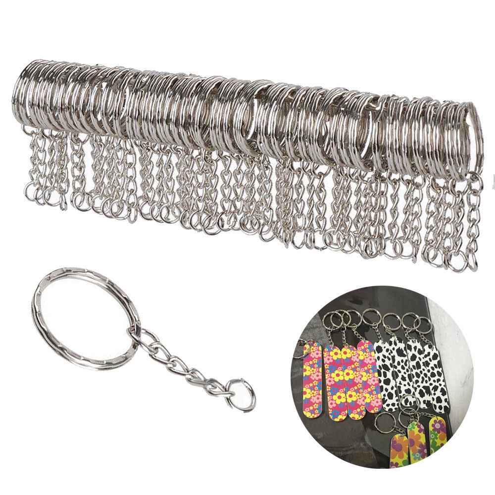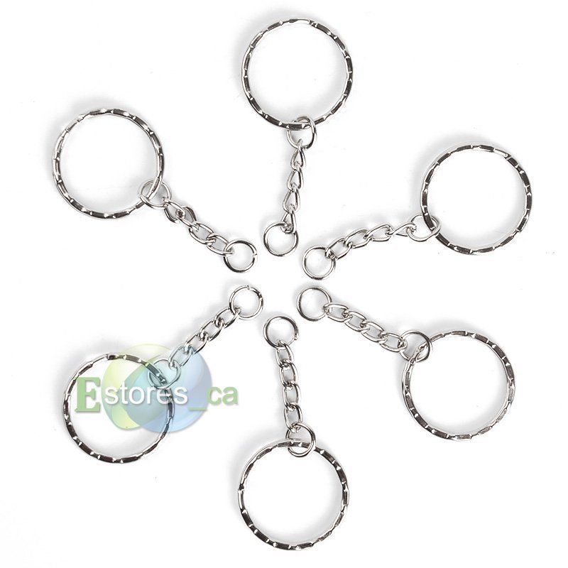 100 Pcs Polished Silver DIY Key Rings Key Chains With Link Chain Key Holder 25mm