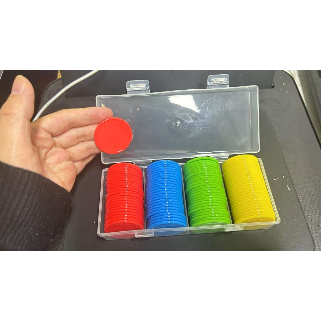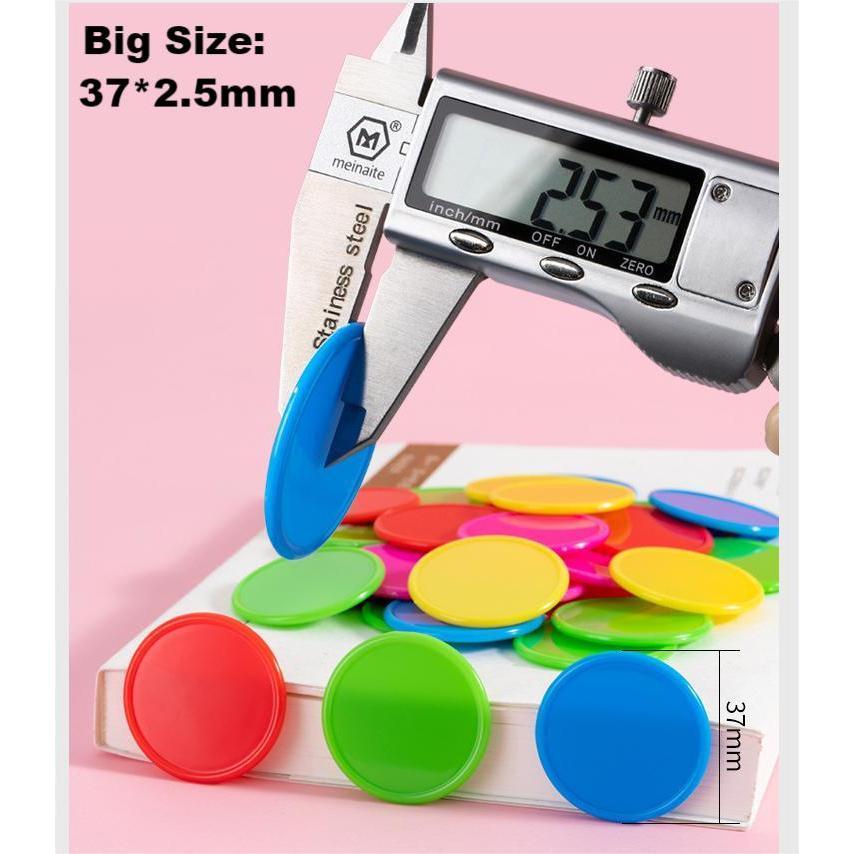 100 Pieces 37mm Jumbo Size Opaque Plastic Learning Counters Mini Poker Chips Game Tokens with Storage Box (4 Colors-Red Yellow Blue Green)