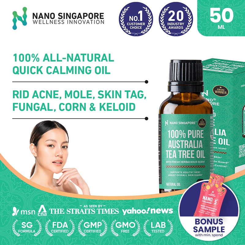 100% Pure Tea Tree Essential Oil - Aid Remove Acne, Mole, Skin Tag, Fungal, Corn 50ml
