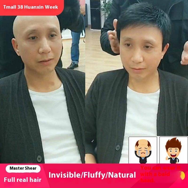 100% Real Human Hair Wigs Men Short Full Wig Hairpiece Toupees Natural Men's Wig Breathable For Man Gift for Middle-aged And Elderly Men