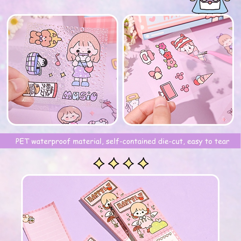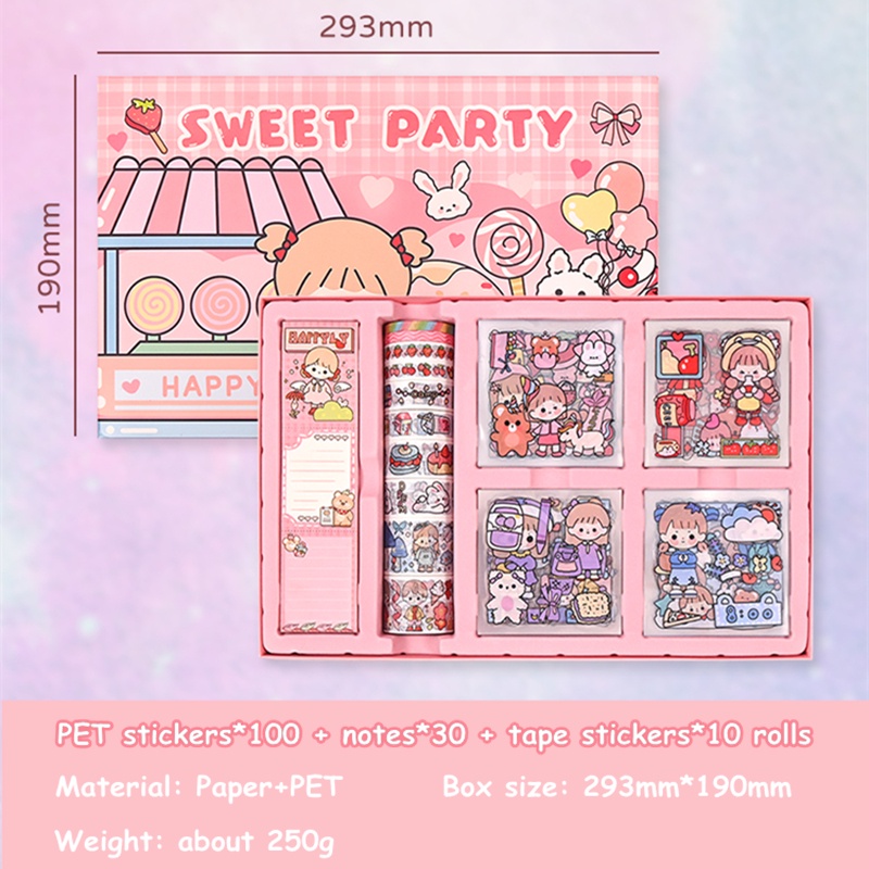 100 hand account stickers note gift box children's girl tape stickers cut-free waterproof decorative stickers set