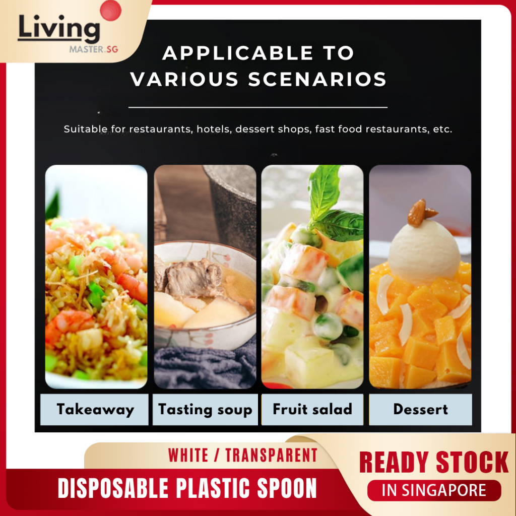 100 pcs Disposable Plastic Spoon / Chinese Spoon / Soup Spoon (White / Transparent) Disposable Spoon