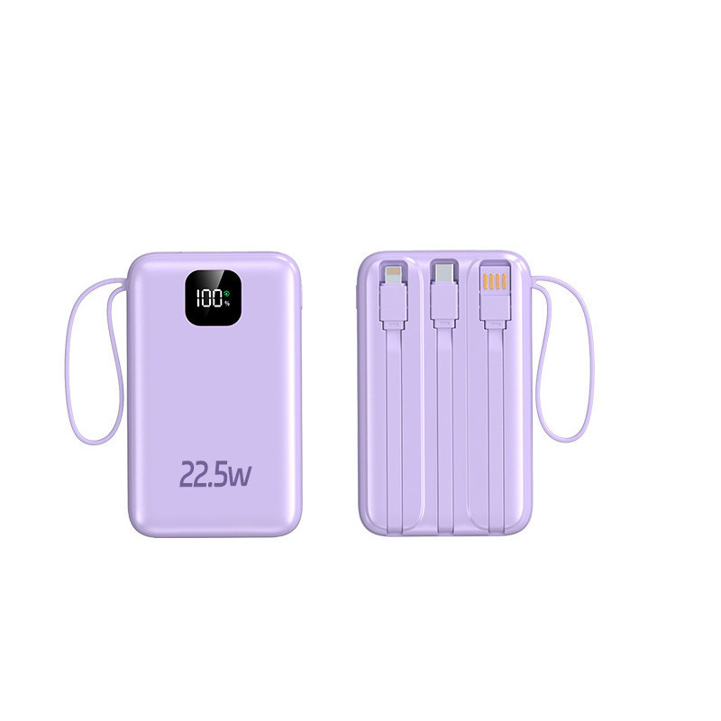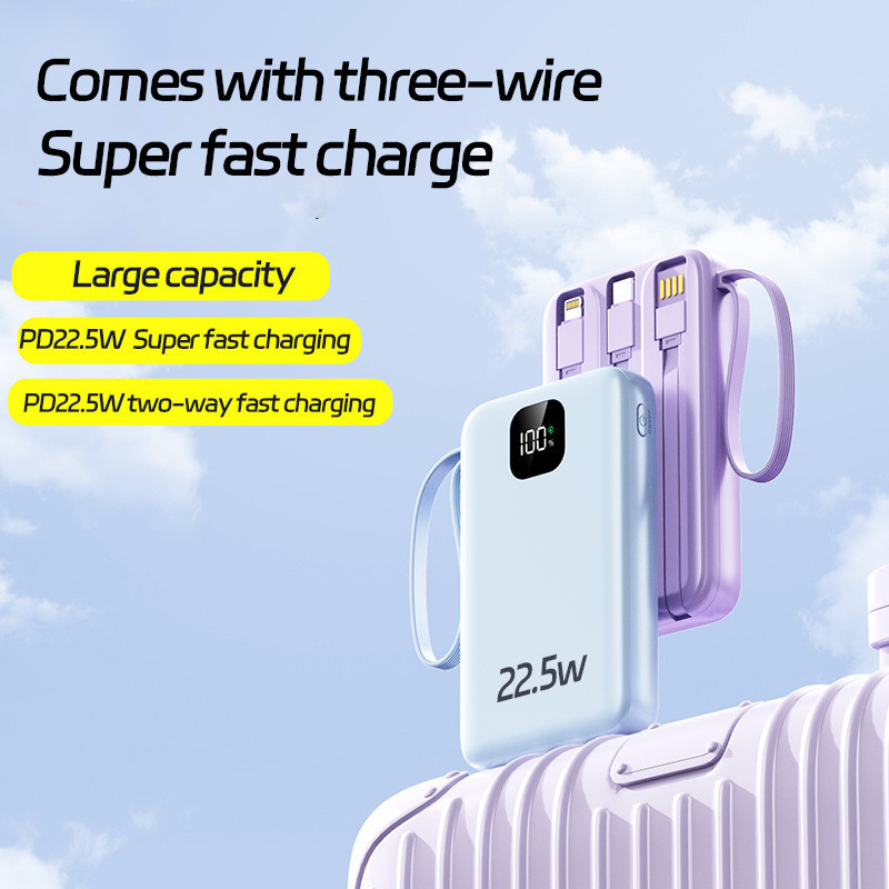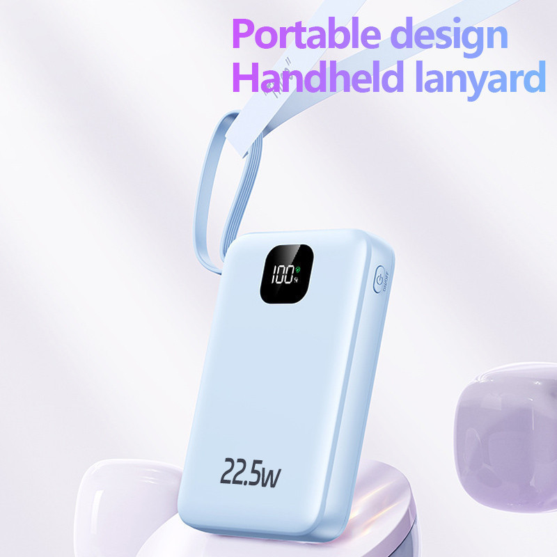 10000mAh 20000mAh Fast Charging Power Bank with Built-in Cable Portable PD 22.5W Digital Display
