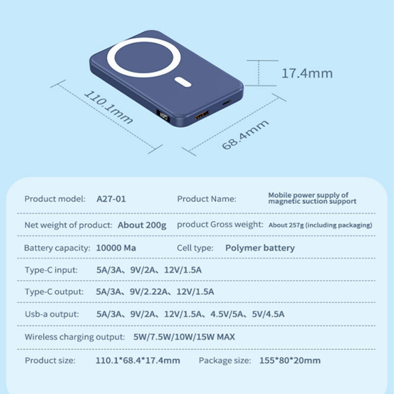 10000mAh Magnetic Power Bank With Foldable Stand Fast Wireless Charger 15W External Battery