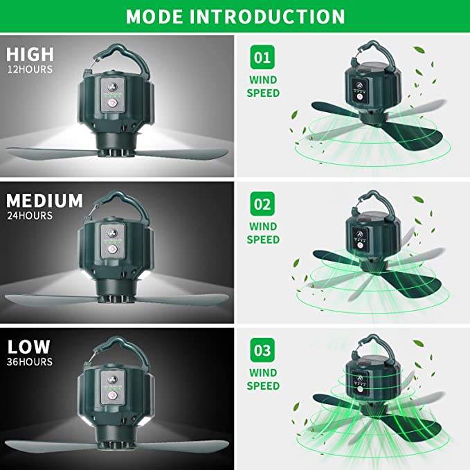 10000mAh USB Rechargeable Remote Control Timing Camping Fan 4 Gears Tent Ceiling Fan with LED Lamp for Home Outdoor Bed Drop small portable ceiling fan with remote control