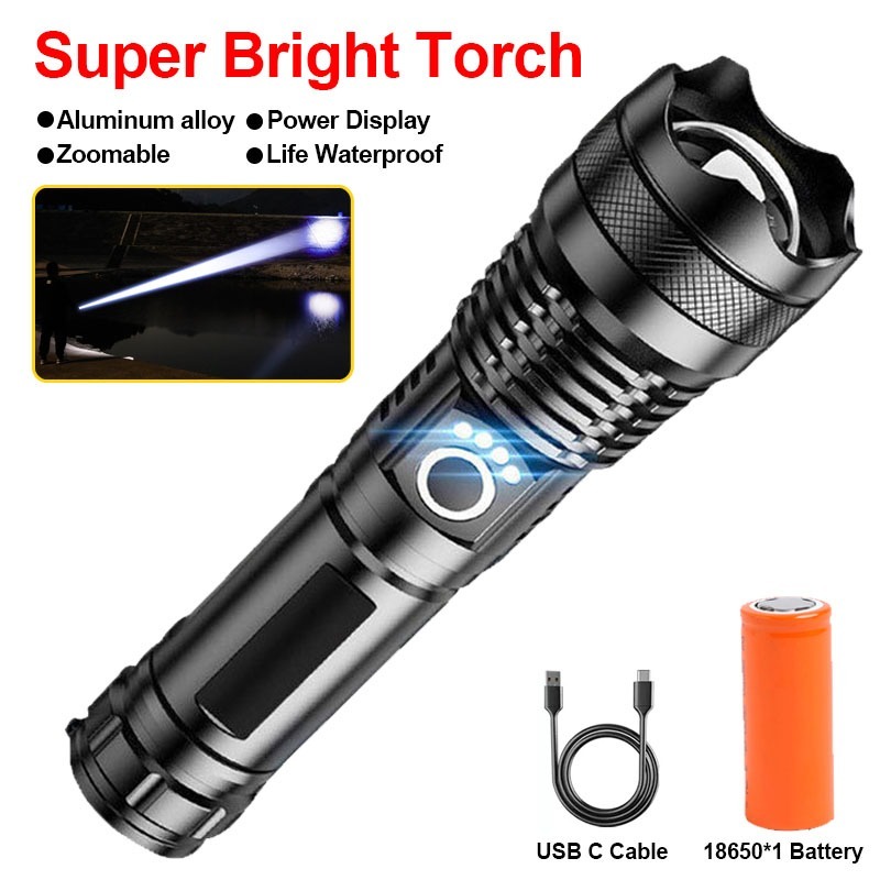 2000W Torchlight Ultra Bright LED Flashlight Handheld Spotlight Flashlight USB Rechargeable Camping Torch Searchlight