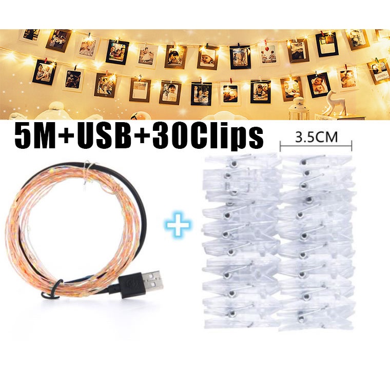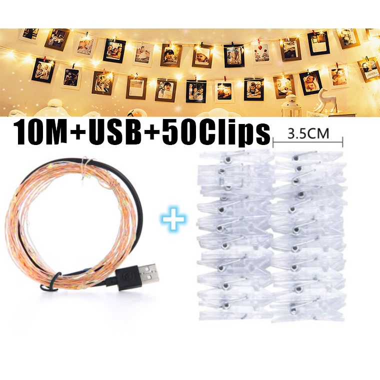 100LED Photo Clip String Lights with 50 Clips Battery Powered USB for Bedroom Birthday Wedding Party Christmas