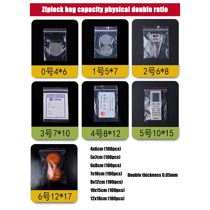 100PCS Resealable Plastic Zip Lock Bags Clear Poly Pull Bone Plastic Bag Quick Seal Bag