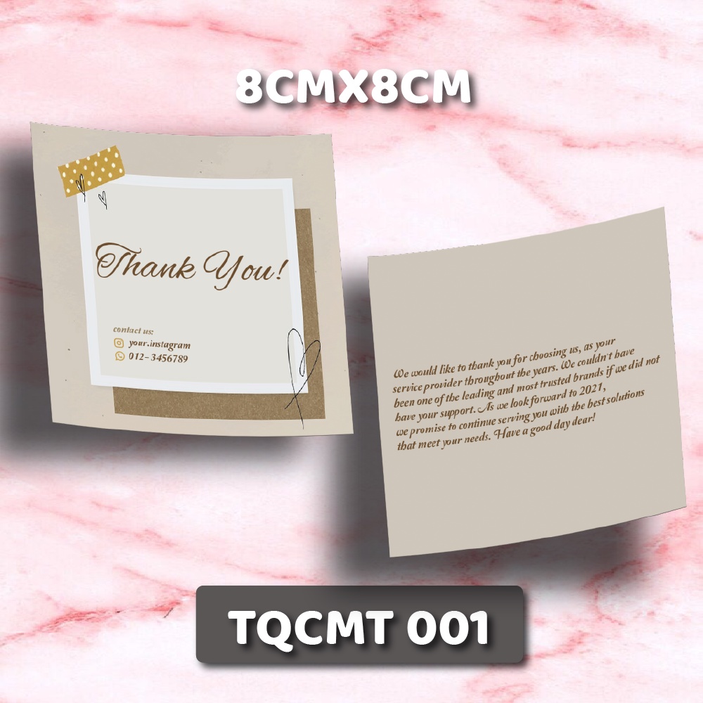 100PCS Thank You Card / Business Card / Name Card / Thank You Card 2SIDE, Wish Card, Greetings Card (8CM X8CM)(001)