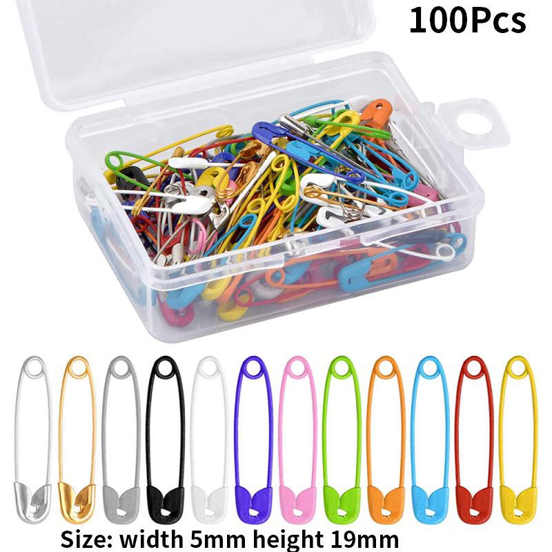 100Pcs 19*5mm Mini Safety Pins Colored Metal Safety Pins with Storage Box Small Safety Pins for Clothes DIY Crafts Sewing Home
