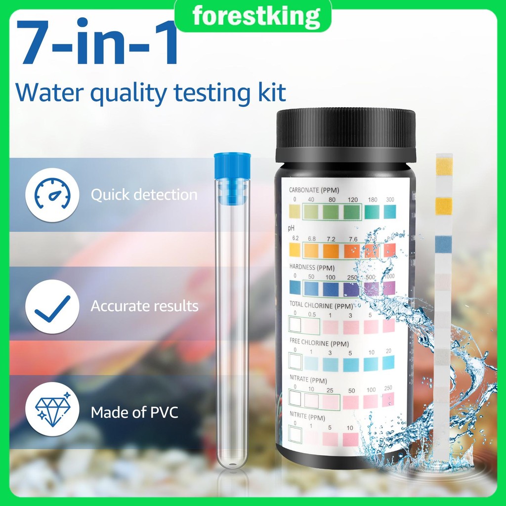 100Pcs Aquarium Test Strips 7 in 1 Fish Tank Test Kit with Test Tube Fast Accurate Aquarium Water Testing Strips for Fish Tanks SHOPSBC7525