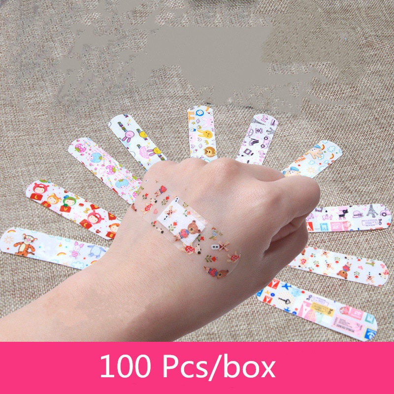 100Pcs Hemostatic Adhesive Bandages Breathable Cute Cartoon Band Aid Waterproof First Aid Emergency Kit for Kids Adhesive Bandage