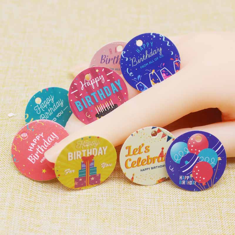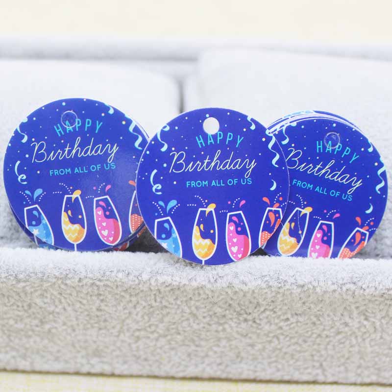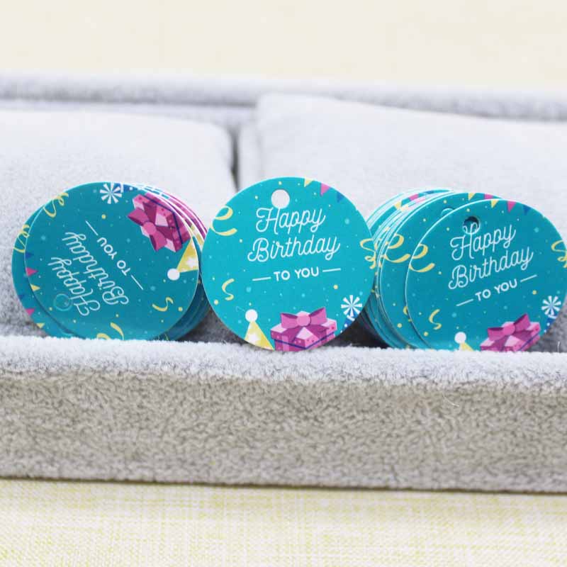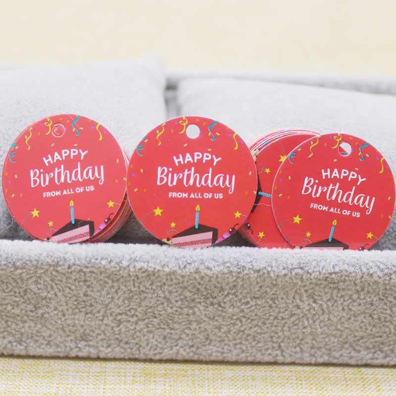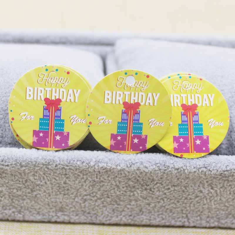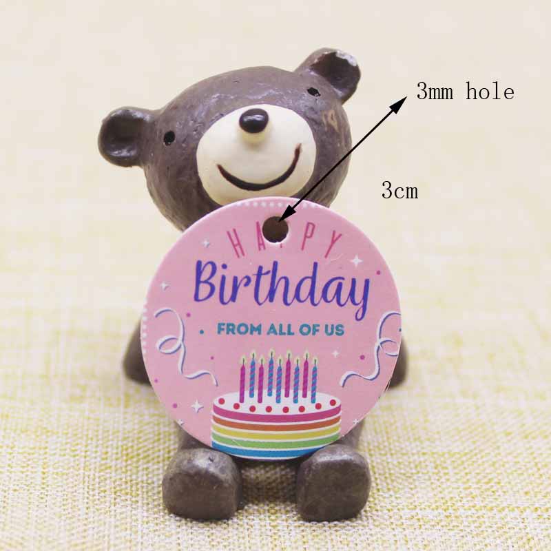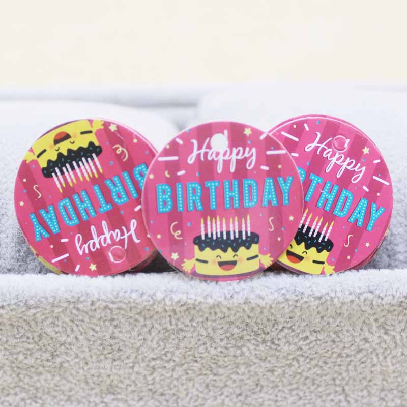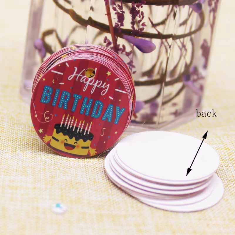 100Tag 100String 3*3cm DIY Happy Birthday To You Hang tag round shape party days gift /crafts/bakery/candy label