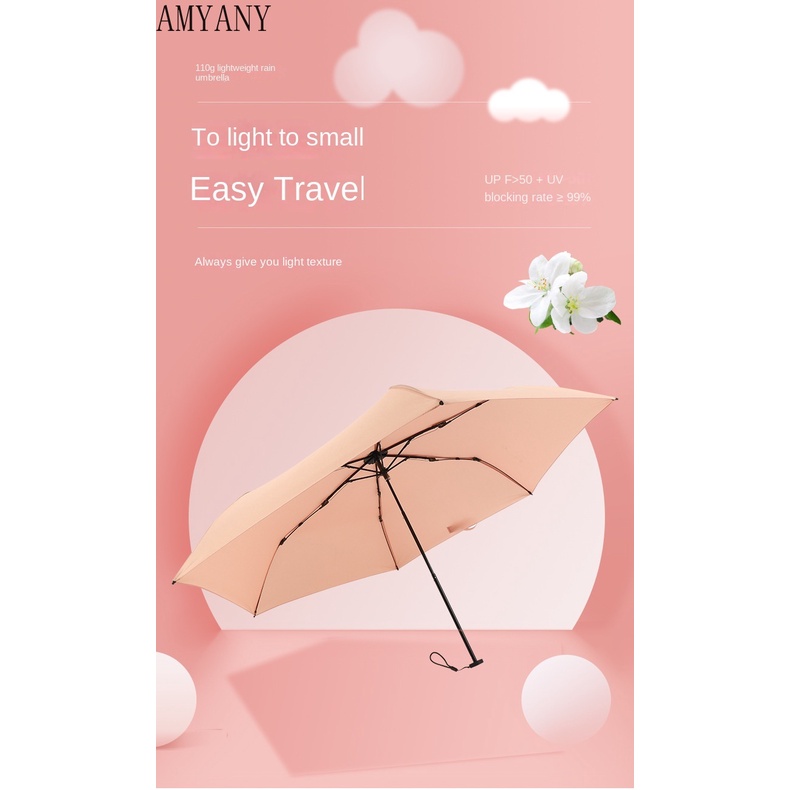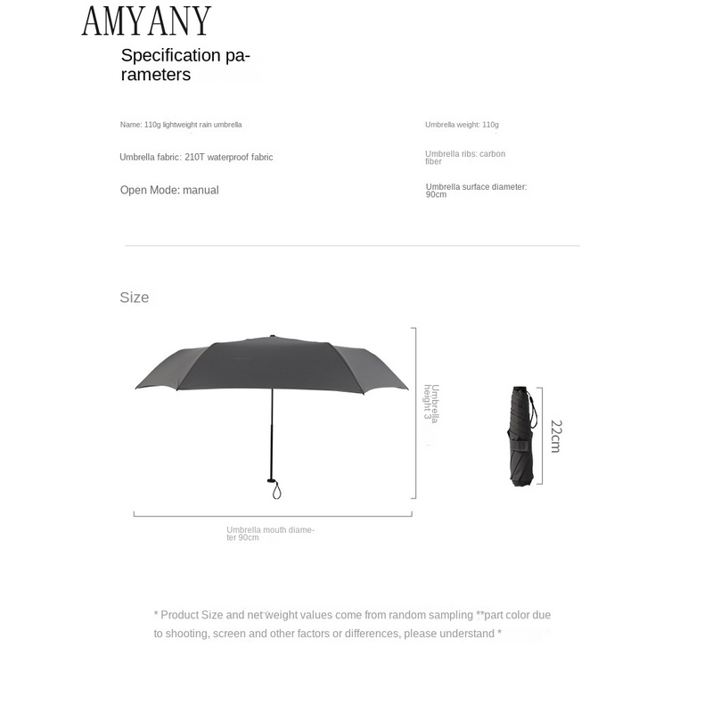 100g Ultralight Carbon Fiber Tri-Fold Umbrella Portable Pencil Umbrella Anti-UV Parasol Sun Umbrella Mini Umbrella