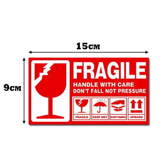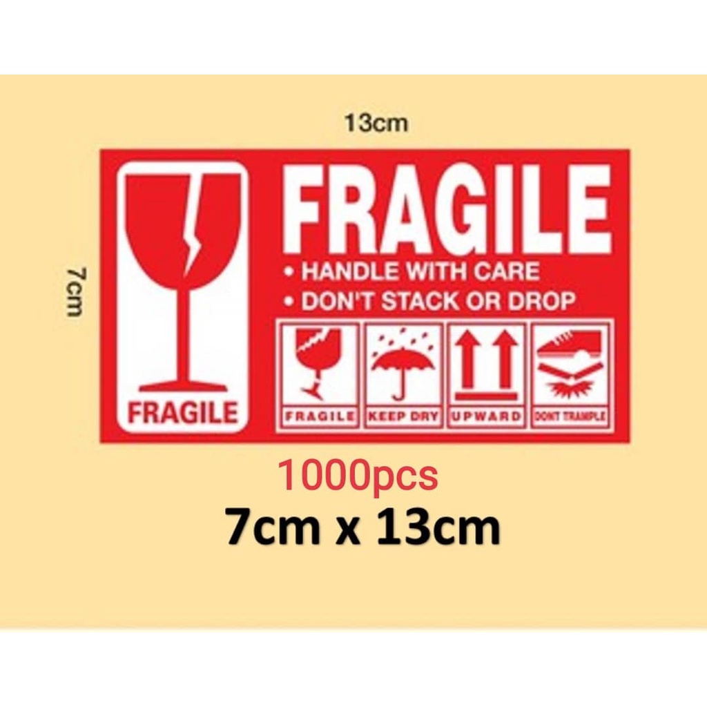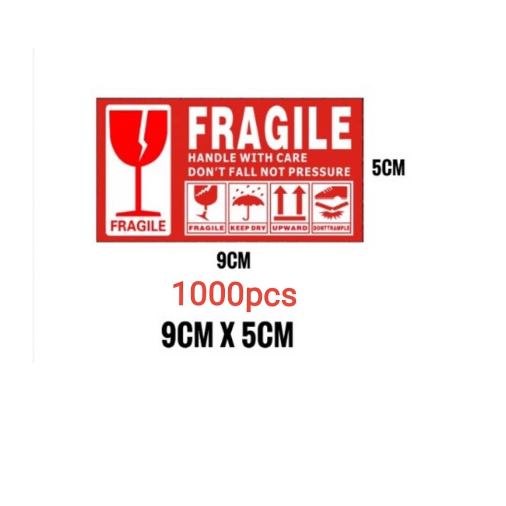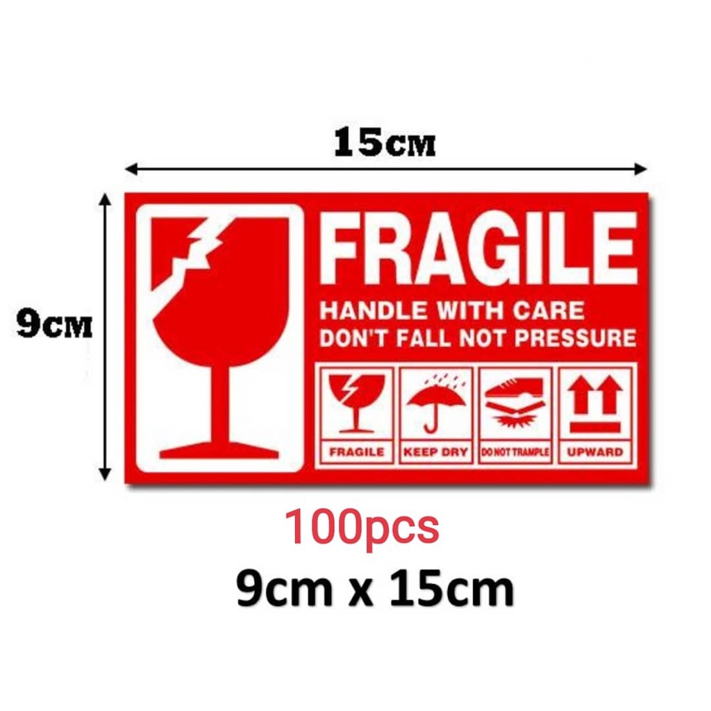 100pcs / 1000pcs - Fragile Sticker Fragile Label Warning Label Mudah Pecah Pelekat Carton Box ( 9*5 / 7*13 / 9*15 )