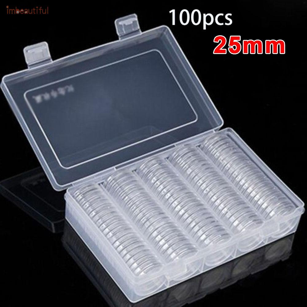 100pcs 25mm Clear Round Coin Capsule Container Storage Box Holder Portable Case brand new and high quality