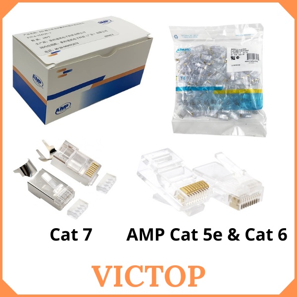100pcs High Quality AMP RJ45 CAT5e CAT6 Head Modular Plug Connector (1 Box)