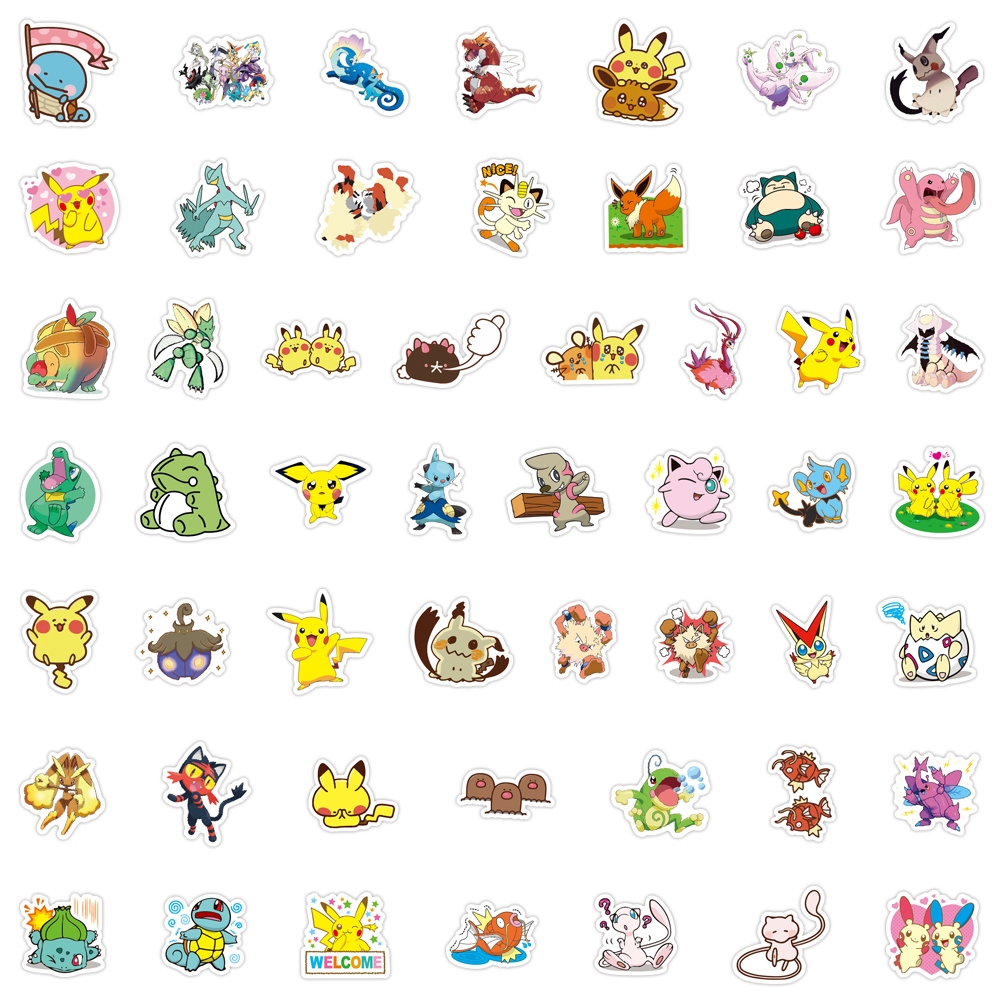 100pcs Qute Funny Pokemon Cartoon Waterproof PVC Stickers