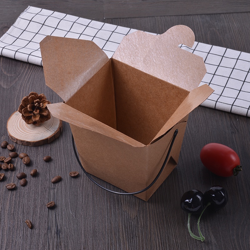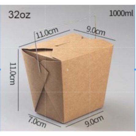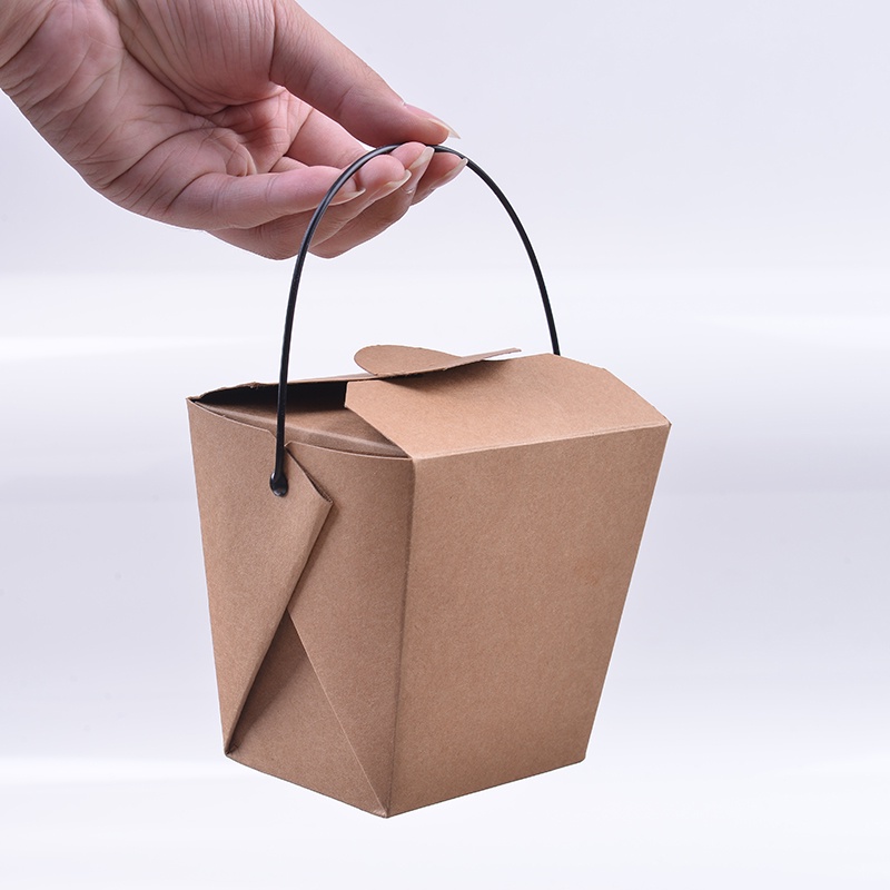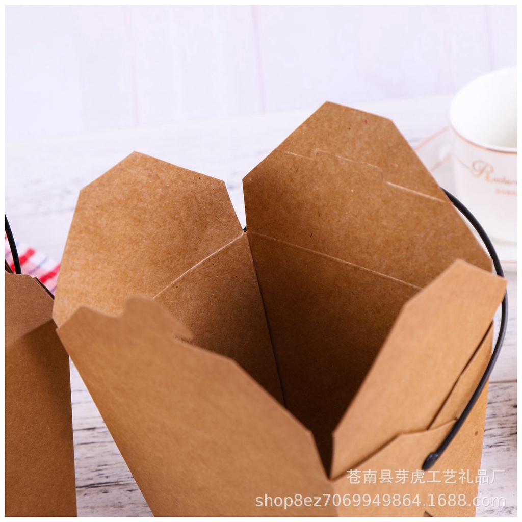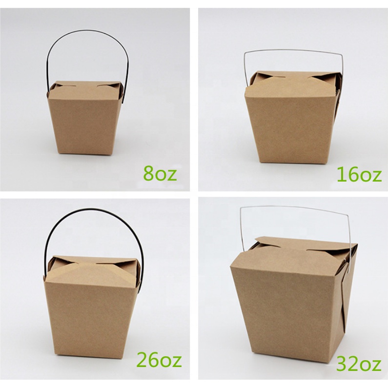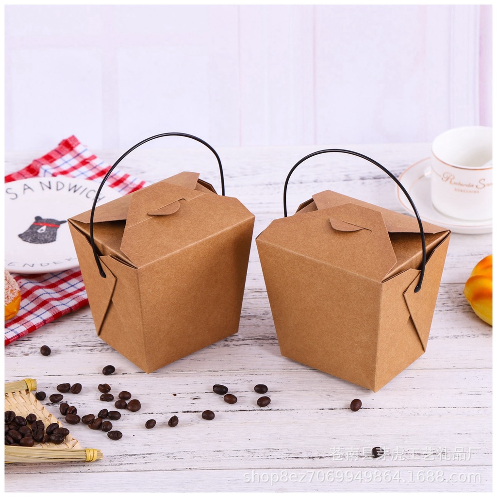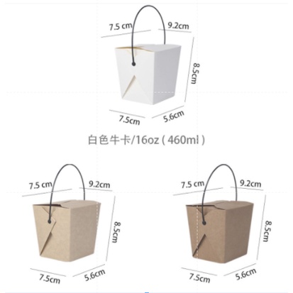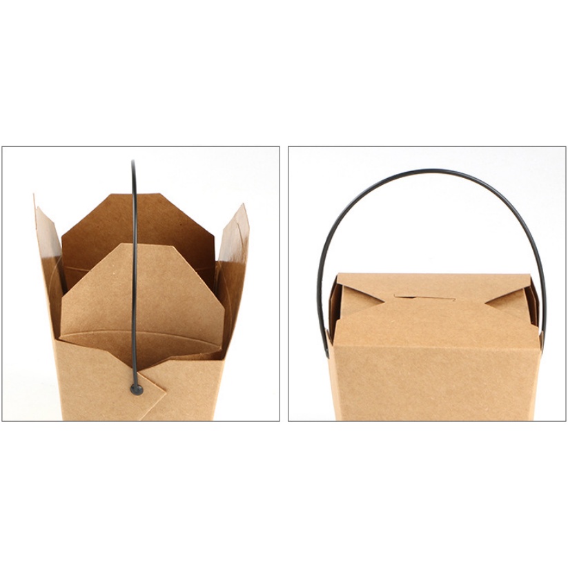 100pcs Rice in a Box Take Out box handle Noodles Food Packaging (Kraft Brown & White)
