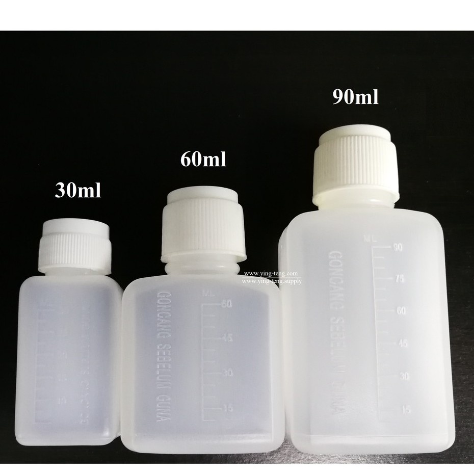 100pcs - Square Translucent Plastic Bottles/ Medicine Packaging, Dispense Bottle (30ml, 60ml, 90ml)