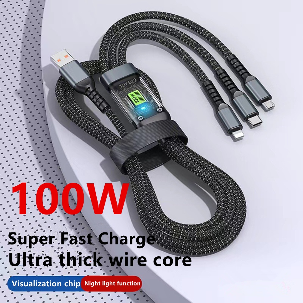 100W 3-in-1 Fast Charging Cable LED Indicator Durable Nylon for Type-C and Android Holiday Special