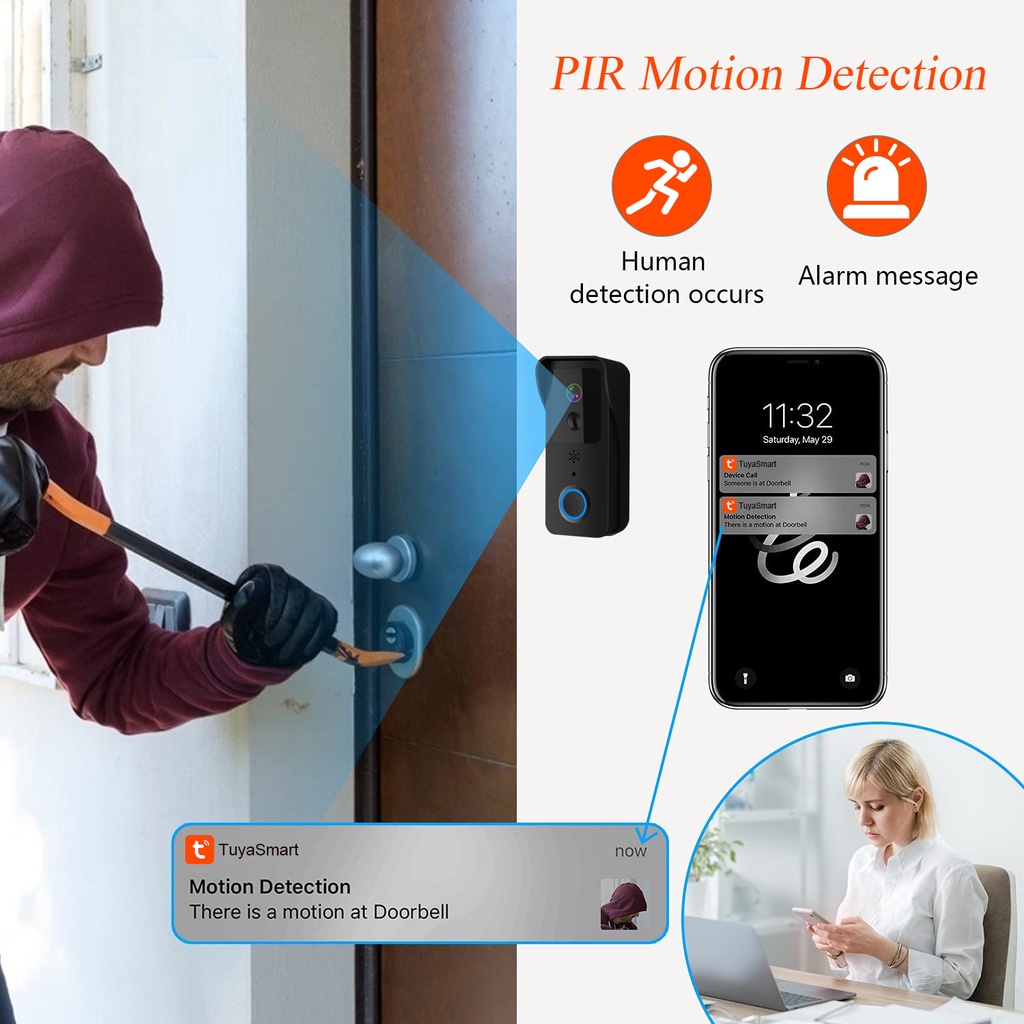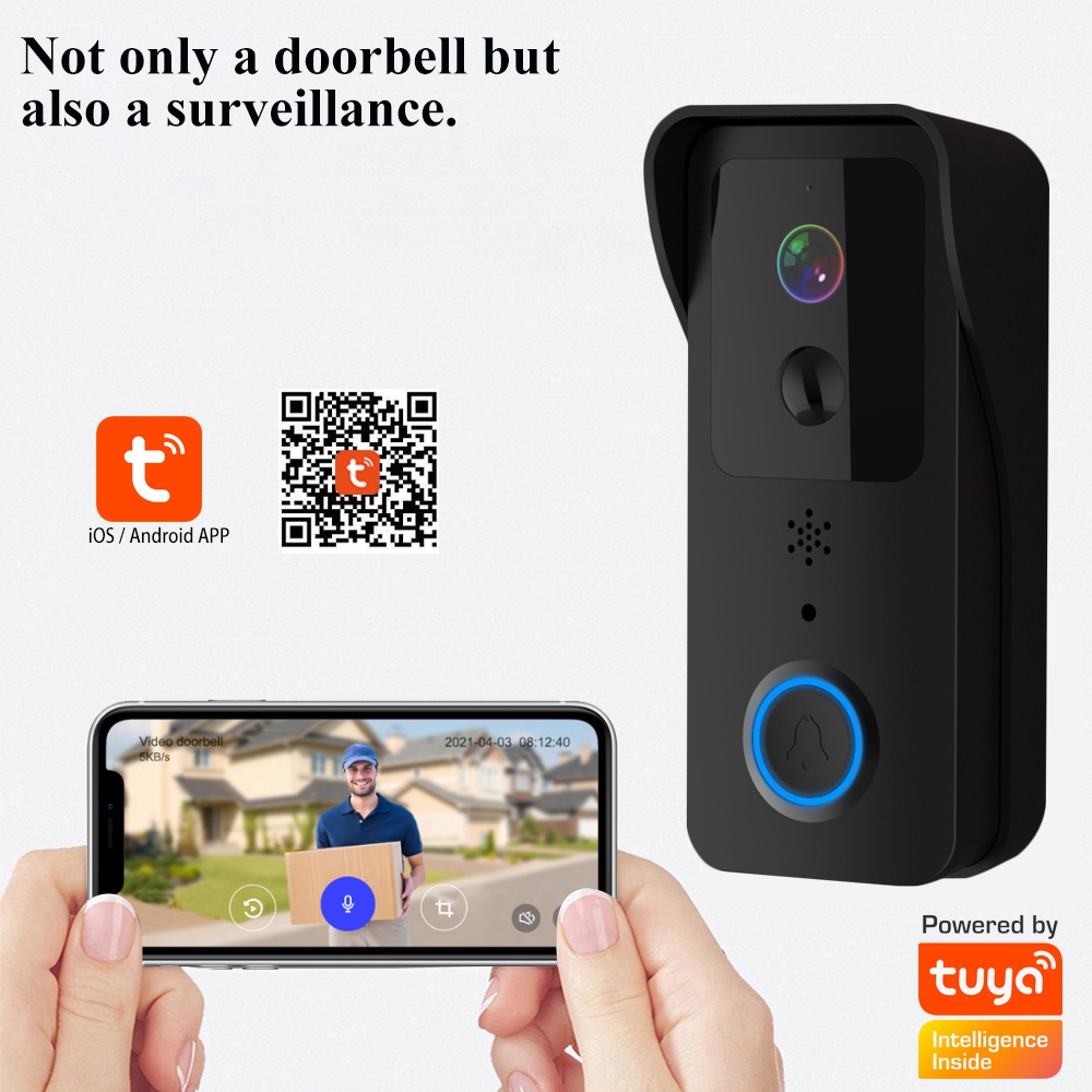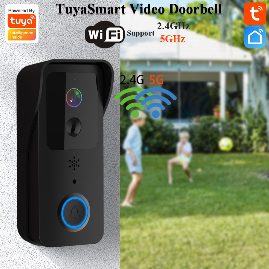 1080P Tuya Smart WiFi Video Doorbell 5G/2.4GHz Dual Band Outdoor Wireless Door Bell IP54 Waterproof Smart Home Doorbell WiFi Camera Intercom