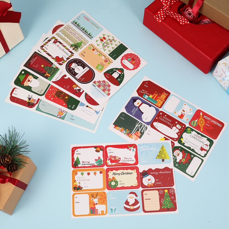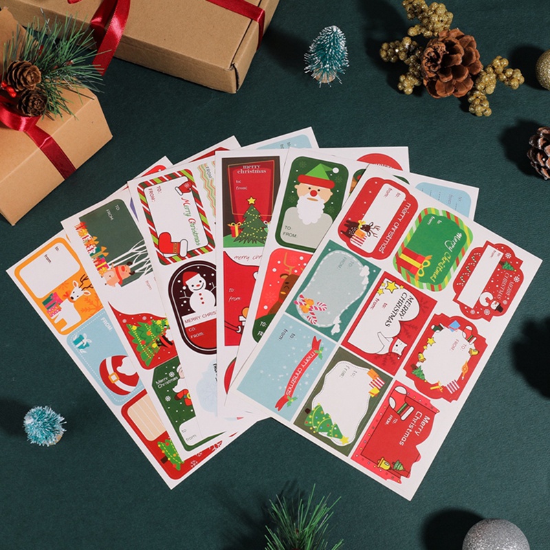 108Pcs/12 Sheets Merry Christmas DIY Gift Stickers Name Tags Present Seal Label Stickers Cartoon Labels Snowman Trees XMAS Santa Claus Gift Box Sticke